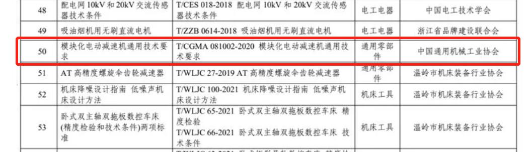 2021年12月30日,工業(yè)和信息化部科技司對遴選出的111項“2021年百項團體標準應用示范項目”團體標準進行公布,由中國通用機械工業(yè)協(xié)會發(fā)布的《模塊化電動減速機通用技術要求》團體標準成功入選本次示范項目名單。