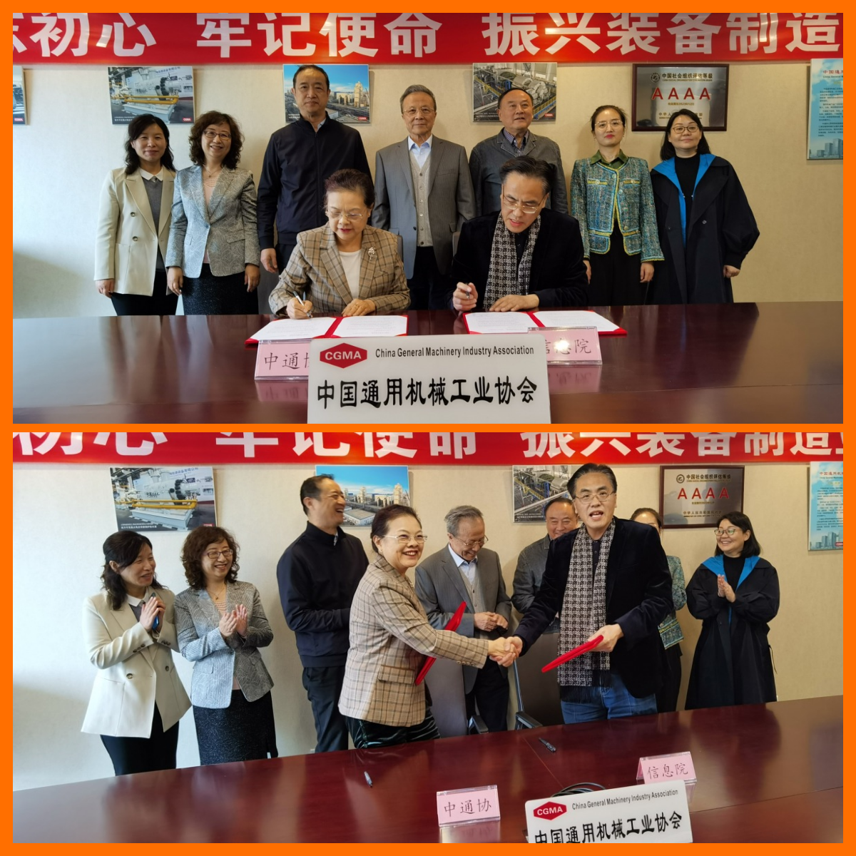 2022年4月13日,中國通用機械工業(yè)協(xié)會與機械工業(yè)信息研究院在中國通用機械工業(yè)協(xié)會辦公地簽訂戰(zhàn)略合作框架協(xié)議并座談,中通協(xié)會長黃鸝與機械工業(yè)信息研究院黨委書記郭銳分別代表雙方簽約,中通協(xié)名譽會長、監(jiān)事長隋永濱,機械工業(yè)信息研究院副院長石勇以及中通協(xié)副會長張宗列,中通協(xié)副會長兼秘書長孫放和相關(guān)人員參與座談。