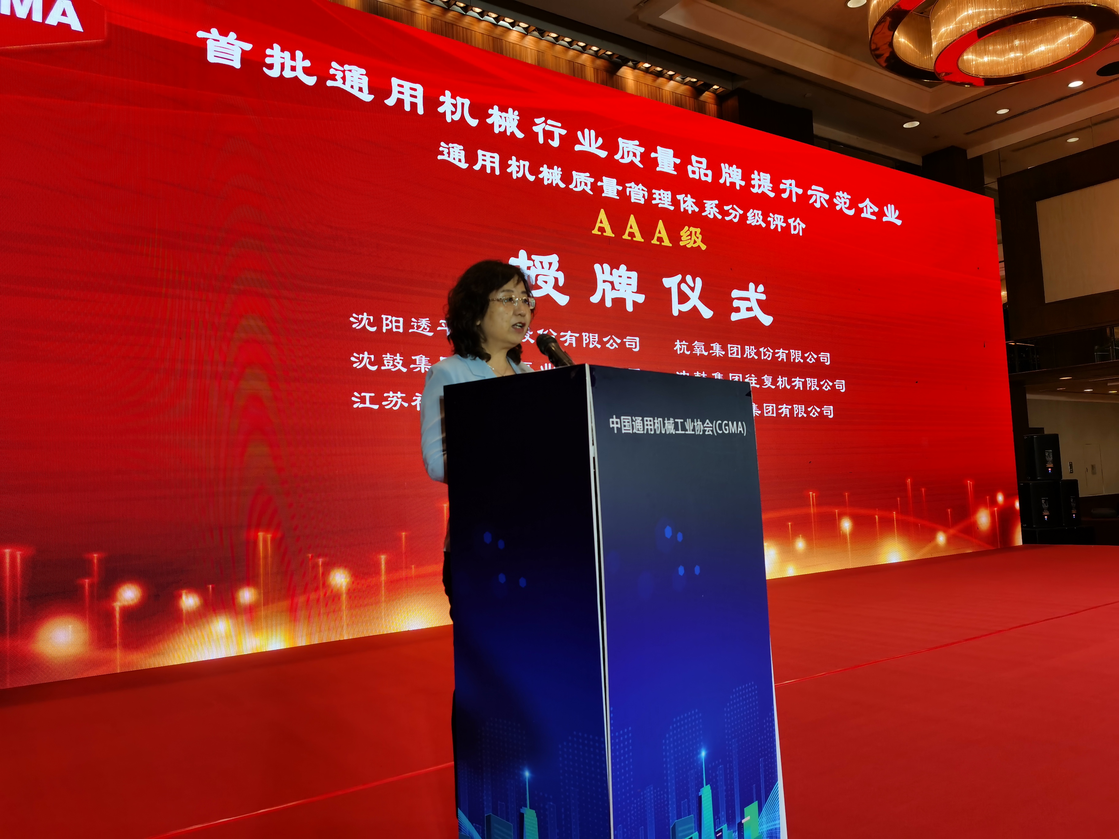 2022年8月25日,在中國(guó)通用機(jī)械工業(yè)協(xié)會(huì)第八屆理事會(huì)第二次會(huì)議上,中通協(xié)為首批6家獲得AAA級(jí)質(zhì)量管理體系分級(jí)評(píng)價(jià)的標(biāo)桿示范企業(yè)頒發(fā)了分級(jí)評(píng)價(jià)證書和“通用機(jī)械行業(yè)質(zhì)量品牌提升百家示范企業(yè)”的牌匾。
