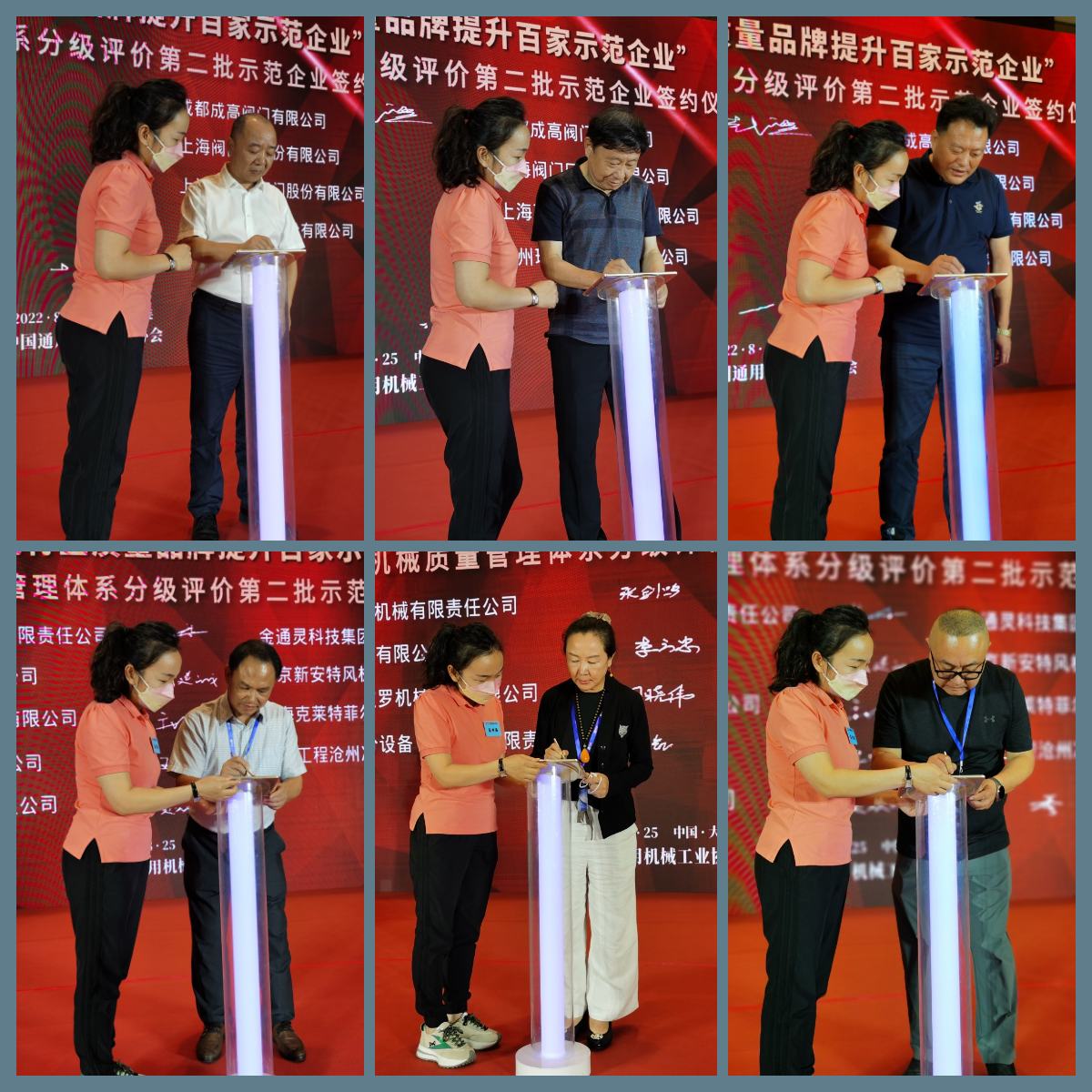 為繼續(xù)通過(guò)分級(jí)評(píng)價(jià)推動(dòng)行業(yè)質(zhì)量管理體系升級(jí)提高,在中通協(xié)八屆二次理事會(huì)上還舉行了第二批示范企業(yè)集體簽約儀式。中核蘇閥科技實(shí)業(yè)股份有限公司、成都成高閥門有限公司、江蘇蘇鹽閥門有限公司、上海閥門廠股份有限公司、哈電集團(tuán)哈爾濱電站閥門有限公司、上海高中壓閥門股份有限公司、固耐重工(蘇州)有限公司、臺(tái)州環(huán)天科技股份有限公司、重慶江北機(jī)械有限責(zé)任公司、重慶水泵廠有限責(zé)任公司,大耐泵業(yè)有限公司,上海水泵制造有限公司、上海阿波羅機(jī)械股份有限公司、中國(guó)電建集團(tuán)上海能源裝備有限公司、四川空分設(shè)備(集團(tuán))有限責(zé)任公司、青島精銳機(jī)械制造有限公司、重慶通用工業(yè)(集團(tuán))有限責(zé)任公司、金通靈科技集團(tuán)股份有限公司、南通大通寶富風(fēng)機(jī)有限公司、北京新安特風(fēng)機(jī)有限公司、山東省章丘鼓風(fēng)機(jī)股份有限公司、威海克萊特菲爾風(fēng)機(jī)有限公司、蘇州頂裕節(jié)能設(shè)備有限公司、中化工程滄州冷卻技術(shù)有限公司、廣東覽訊科技開發(fā)有限公司共25家企業(yè)完成集體簽約,將陸續(xù)開展分級(jí)評(píng)價(jià)工作。