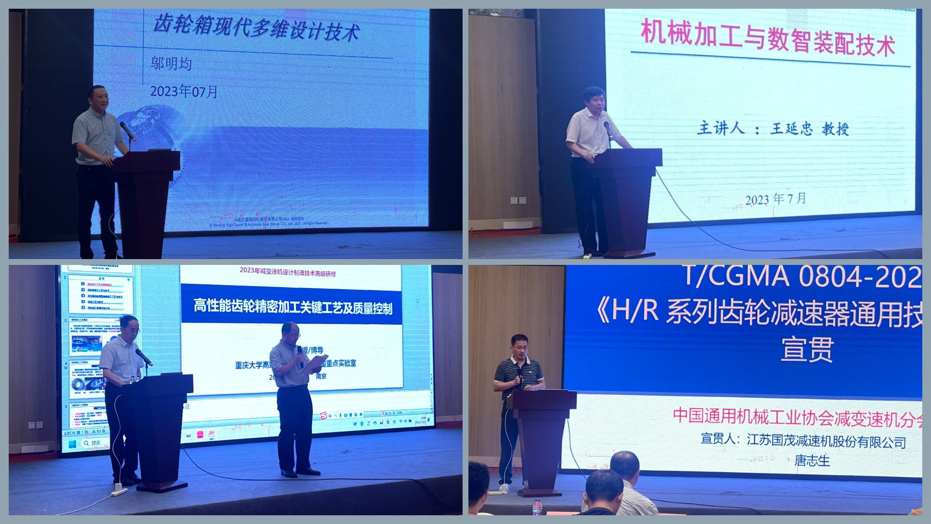 本次研修班邀請到了在行業(yè)領(lǐng)域內(nèi)具有影響力的專家和教授及標(biāo)準(zhǔn)主起草人。南京高精齒輪集團(tuán)有限公司研發(fā)副總經(jīng)理鄔明均,做了《齒輪箱現(xiàn)代多維設(shè)計技術(shù)》的培訓(xùn)報告,從強度計算、流體熱計算和機電耦合計算等角度闡述了多維數(shù)字化系統(tǒng)設(shè)計理念與其在產(chǎn)品設(shè)計中的具體應(yīng)用;北京航空航天大學(xué)王延忠教授,以《機械加工與數(shù)智裝配》為題,深入淺出的講解了先進(jìn)制造技術(shù)在保障加工產(chǎn)品質(zhì)量方面的作用以及數(shù)字孿生、數(shù)智裝配設(shè)計過程中的應(yīng)用;重慶大學(xué)李國龍教授從工業(yè)裝備和加工工藝出發(fā),從全過程加工的角度詳細(xì)講解了齒輪高精度加工技術(shù)和質(zhì)控方法;培訓(xùn)的最后,江蘇國茂減速機股份有限公司高工唐志生對《H/R系列齒輪減速器通用技術(shù)規(guī)范》進(jìn)行了講解和宣貫。