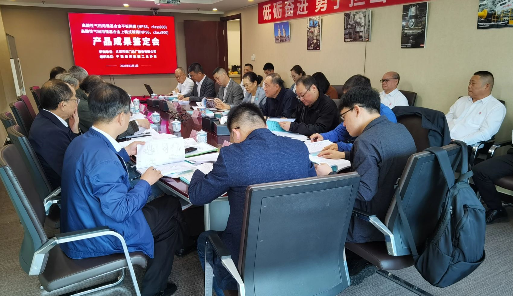 2023 年 11月1日,中國通用機(jī)械工業(yè)協(xié)會在北京組織召開了由北京市閥門總廠股份有限公司研制的“高酸性氣田用鎳基合金平板閘閥 (NPS6,class900)”和“高酸性氣田用鎳基合金上裝式球閥(NPS6,class900)”兩項(xiàng)產(chǎn)品鑒定會,中國通用機(jī)械工業(yè)協(xié)會會長黃鸝參加鑒定會,鑒定會由中國通用機(jī)械工業(yè)協(xié)會副會長張宗列主持。