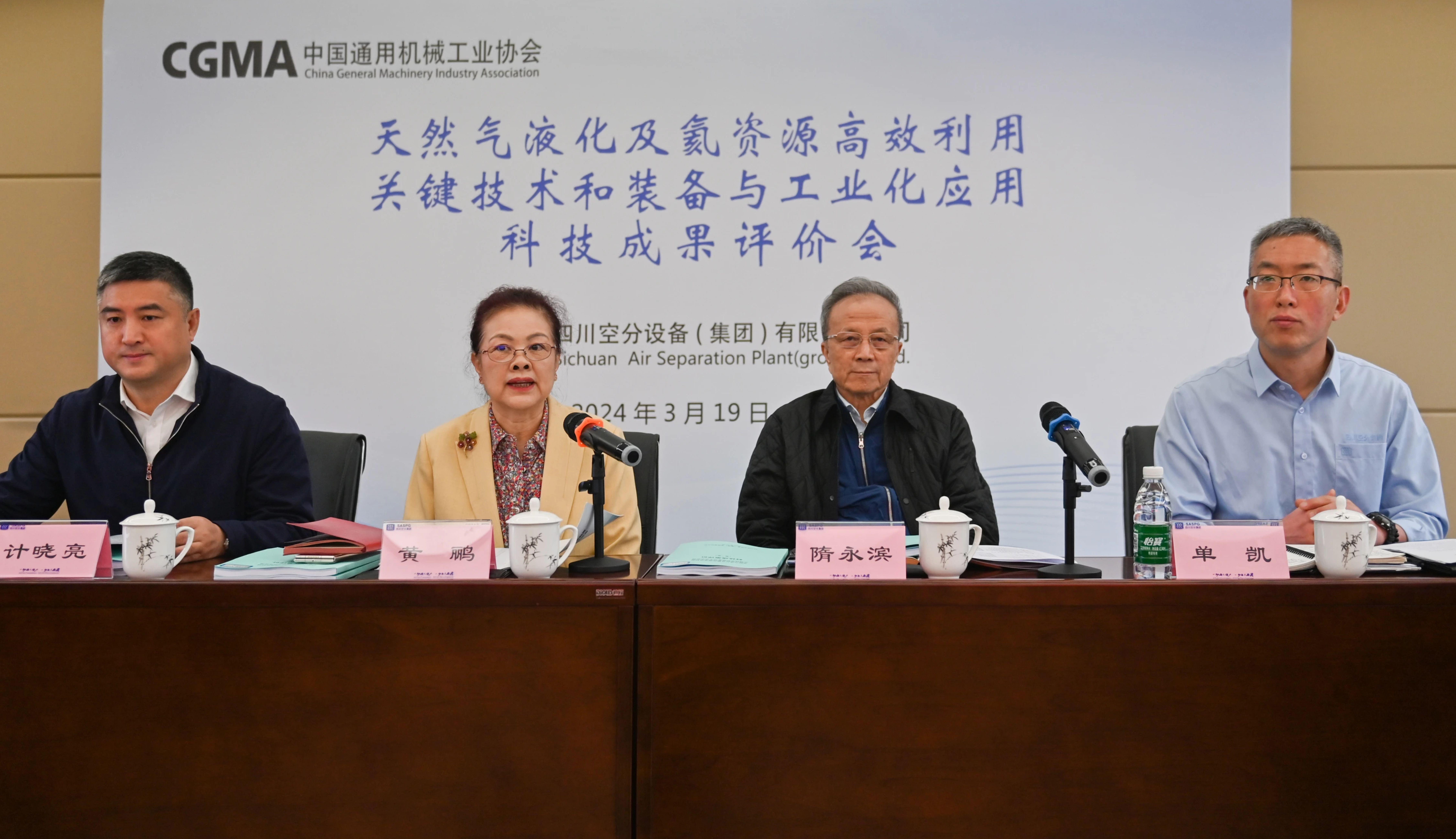 2024年3月19日,中國通用機(jī)械工業(yè)協(xié)會(huì)在成都組織召開了由四川空分設(shè)備(集團(tuán))有限責(zé)任公司自主開發(fā)的“天然氣液化及氦資源高效利用關(guān)鍵技術(shù)和裝備與工業(yè)化應(yīng)用”科技成果評(píng)價(jià)會(huì)。會(huì)議由中國通用機(jī)械工業(yè)協(xié)會(huì)會(huì)長黃鸝主持。