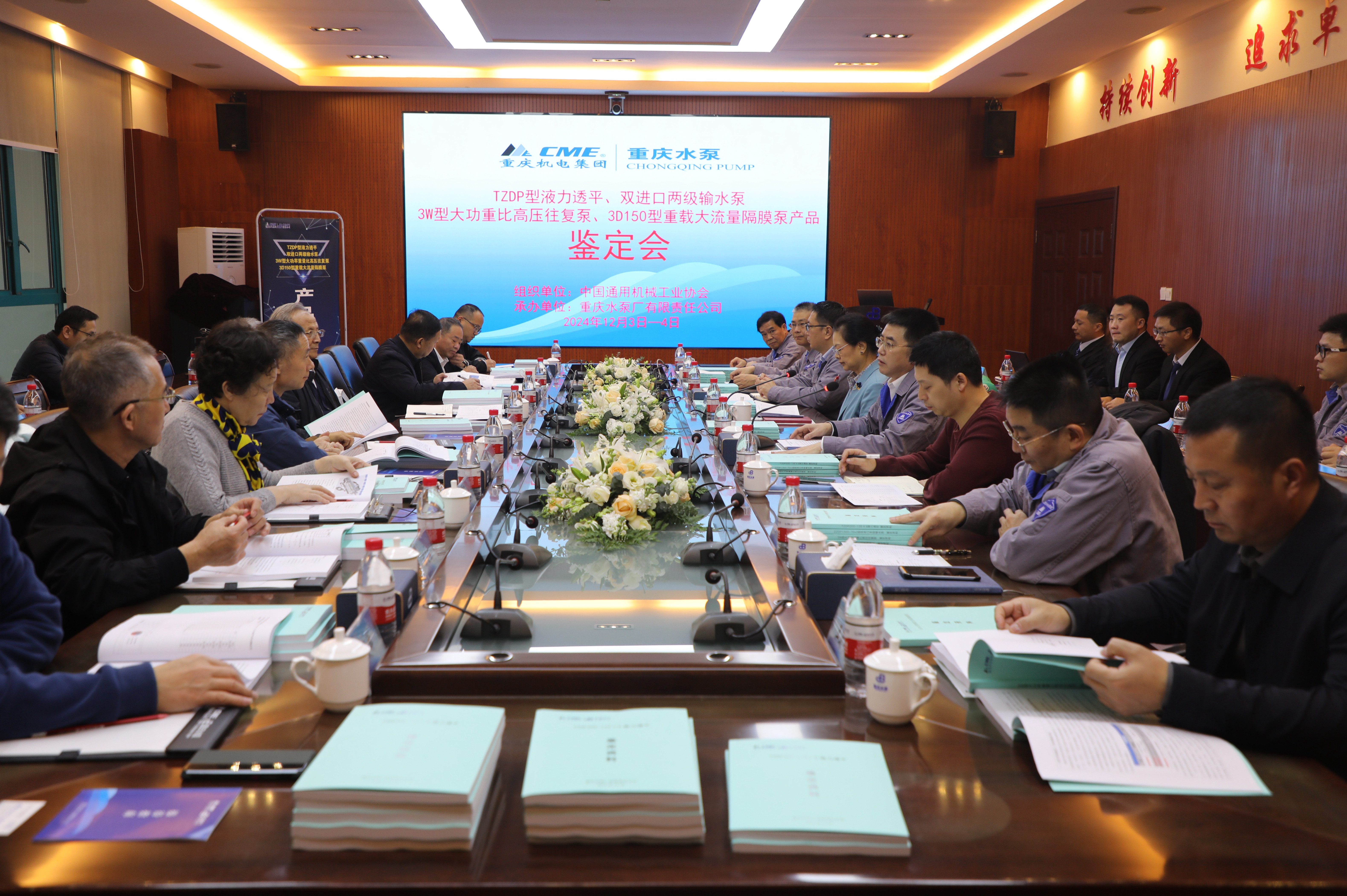 2024年12月3-4日,中國通用機械工業(yè)協(xié)會在重慶組織召開了由重慶水泵廠有限責(zé)任公司自主研制的液力透平樣機、大功重比高壓往復(fù)泵和重載大流量隔膜泵以及重慶水泵廠有限責(zé)任公司、寧夏水發(fā)海原供水有限公司和清華大學(xué)聯(lián)合研制的雙進口多級輸水泵產(chǎn)品鑒定會。鑒定會由中國通用機械工業(yè)協(xié)會會長黃鸝主持。