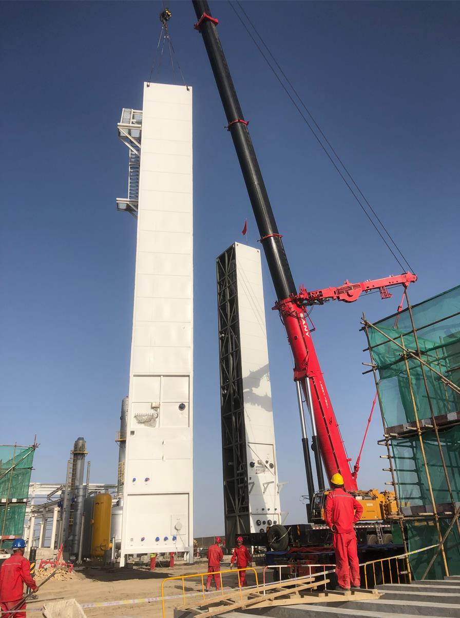 2021年8月,在新疆塔里木盆地,國(guó)機(jī)集團(tuán)中國(guó)空分工程有限公司(簡(jiǎn)稱“中國(guó)空分“)總承包的中石化塔河油田重點(diǎn)工程“東部老區(qū)集中制氮注氣工程” 順利邁入設(shè)備安裝的重要階段。兩座通高36米、單體重量65噸的精餾塔冷箱已順利完成安裝工作,為如期完成項(xiàng)目施工打下堅(jiān)實(shí)基礎(chǔ)。