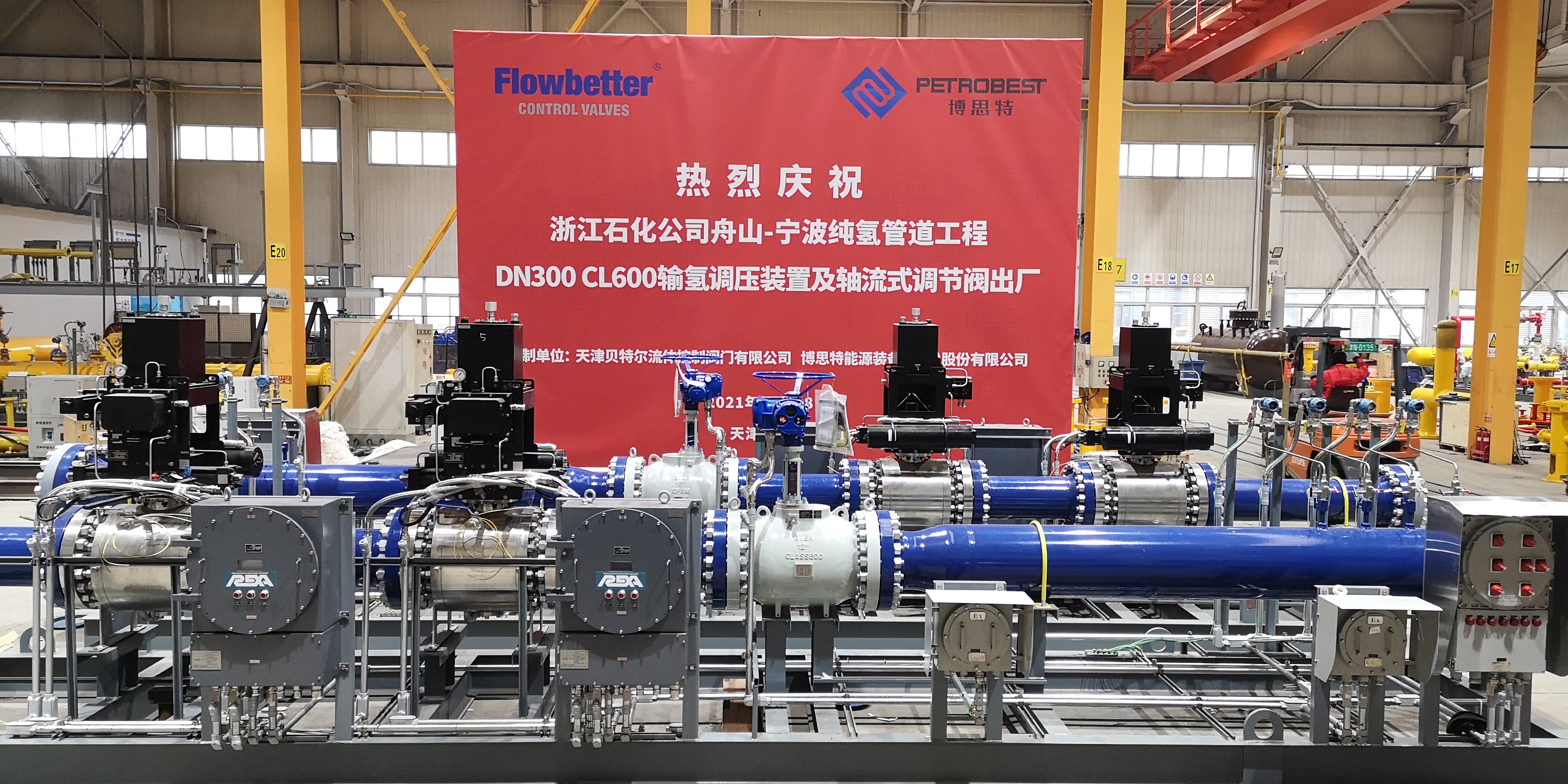 2021年12月24日,由博思特能源裝備(天津)股份有限公司提供調壓裝置、天津貝特爾流體控制閥門有限公司提供軸流式調節(jié)閥、北京東方華智石油工程有限公司提供工程設計服務的浙江石化4000萬噸/年煉化一體化項目舟山-寧波石化基地互聯(lián)互通純氫管道工程DN300 CL600調壓裝置及軸流式調節(jié)閥順利出廠。此項目的順利完成,標志著博思特及其子公司在氫氣輸送技術領域又邁出了堅實的一步,對公司在氫氣和混氫管線輸送領域的業(yè)務延伸具有十分重要的意義。