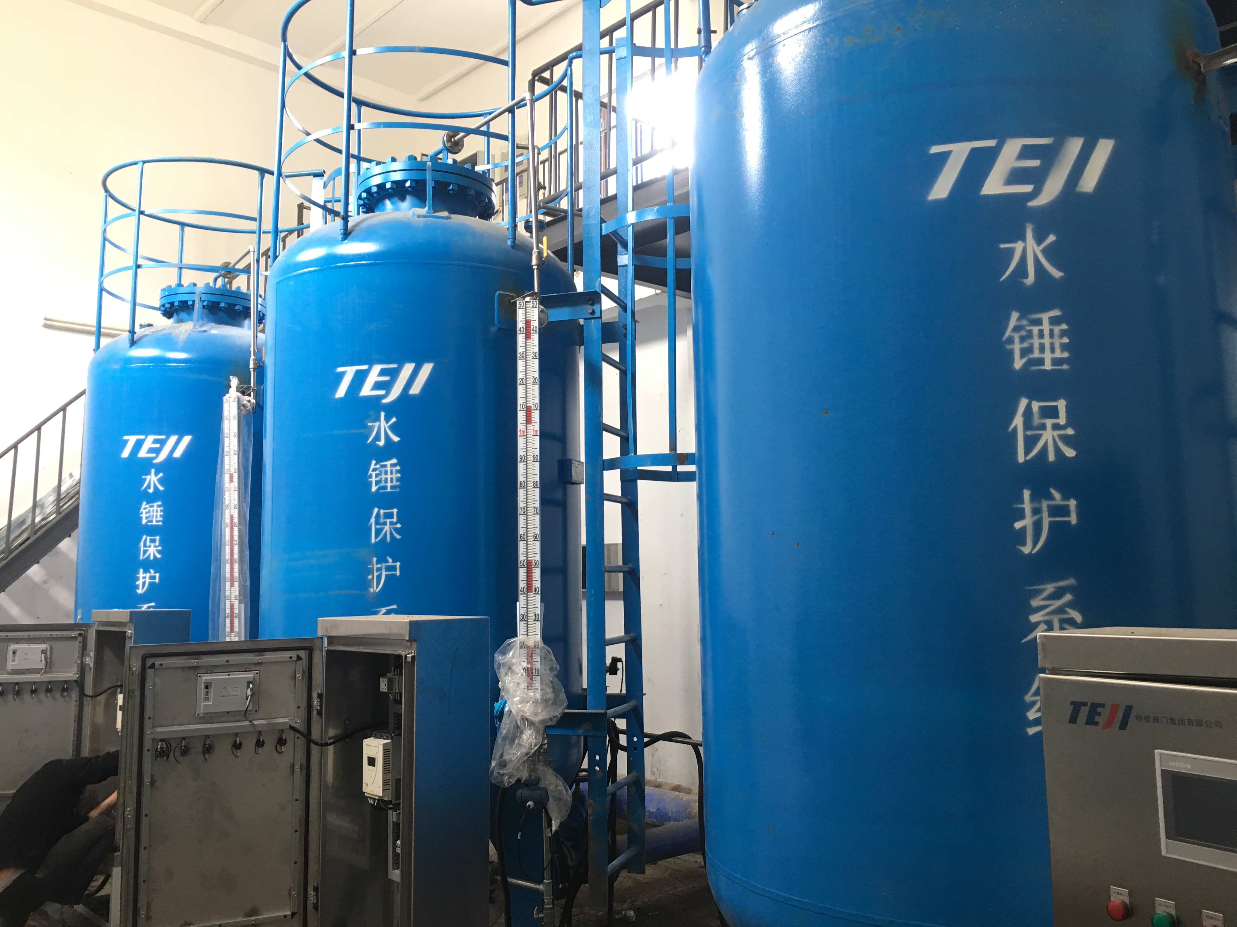 滑雪場(chǎng)地勢(shì)較高,人工造雪過(guò)程中,水需要實(shí)現(xiàn)從低向高的輸送。當(dāng)設(shè)備出現(xiàn)停電或水泵損壞時(shí),正在輸水的管道受壓強(qiáng)影響,使水回流到泵閥,極易導(dǎo)致水泵出水管道、閥門(mén)以及水泵機(jī)組遭受破壞,供水中斷,造成嚴(yán)重的損失。而智能控制系統(tǒng)水錘防護(hù)設(shè)備的存在,正是起到消除水錘,平衡管網(wǎng)壓力,保障水泵正常運(yùn)行,消除安全隱患的作用。