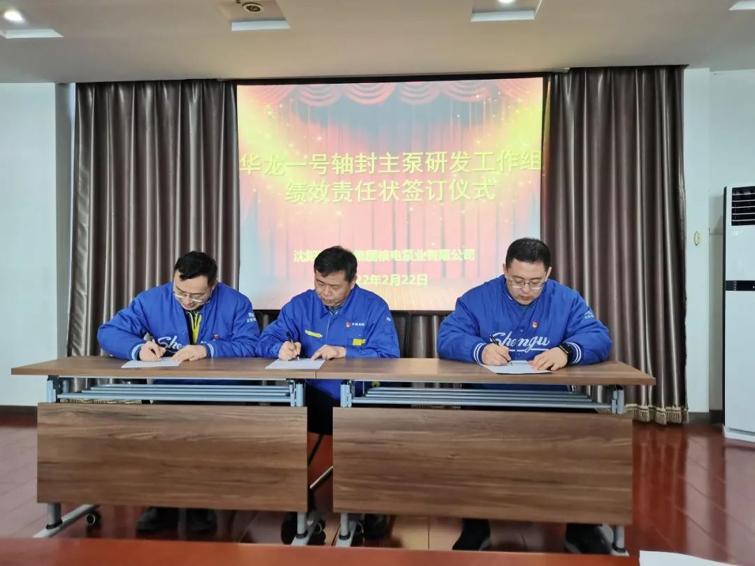 2月22日,沈鼓集團核電公司舉行“華龍一號”軸封主泵項目責任狀簽字儀式,正式吹響了該項目最后沖刺的號角。