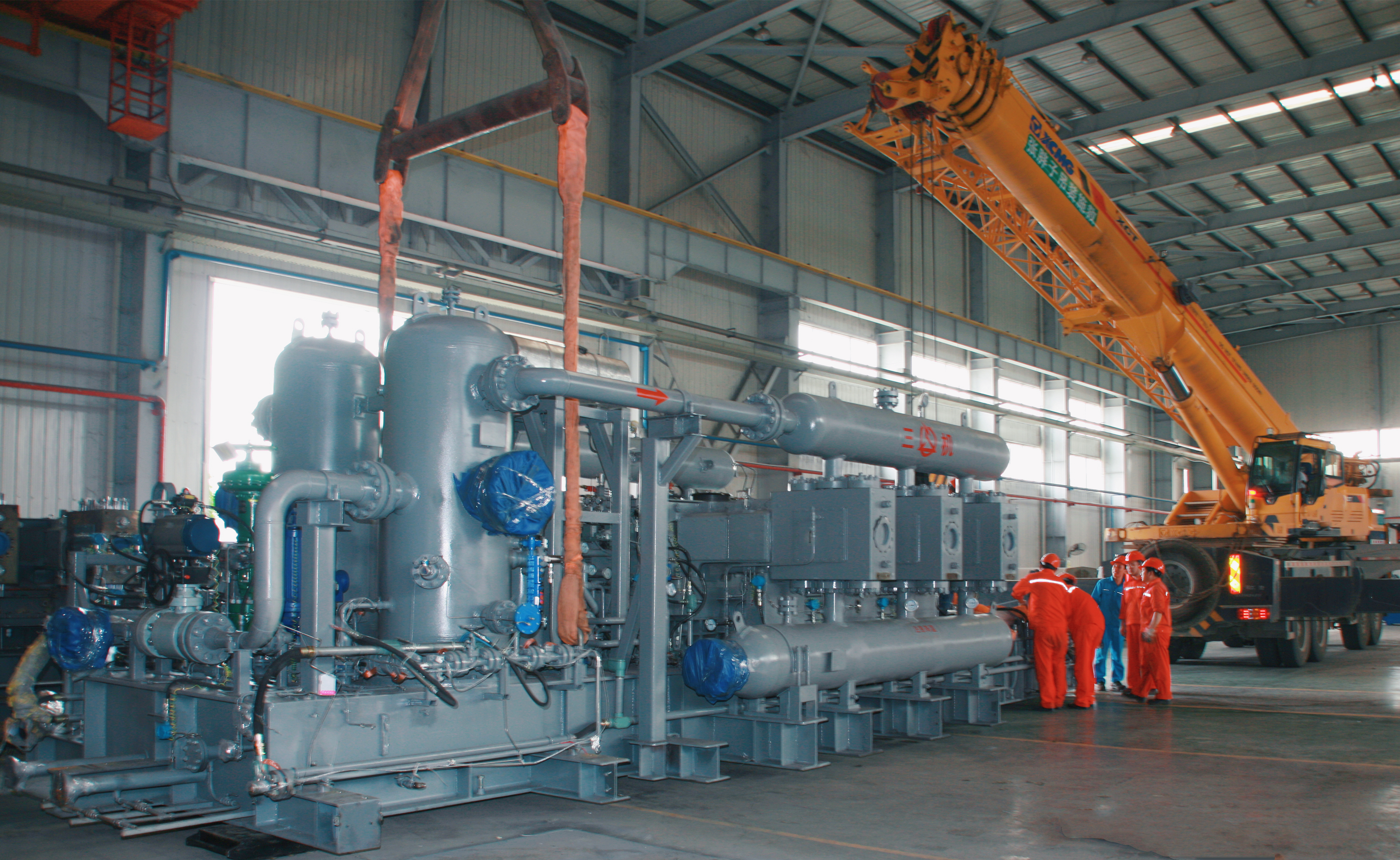 石化機械三機分公司瞄準文23等儲氣庫建設(shè),重點開發(fā)專用壓縮機,并在產(chǎn)品研制、市場應(yīng)用、替代進口機組等方面積累了經(jīng)驗,不斷取得階段成果。為適應(yīng)文23儲氣庫注采氣量變化范圍寬、注采氣壓力范圍變化大等特點,該公司在完成文23儲氣庫先導(dǎo)工程項目的壓縮機產(chǎn)品研發(fā)和制造任務(wù)后,成立產(chǎn)品和工藝設(shè)計攻關(guān)小組,認真總結(jié)先導(dǎo)工程項目相關(guān)經(jīng)驗,吸納國內(nèi)外儲氣庫注氣壓縮機性能優(yōu)點,圍繞壓力高、排量大等復(fù)雜工況開展技術(shù)研究,并在儲氣庫壓縮機國產(chǎn)化方面率先崛起。