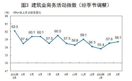 分行業(yè)看,建筑業(yè)商務(wù)活動(dòng)指數(shù)為58.1%,比上月上升0.5個(gè)百分點(diǎn)。服務(wù)業(yè)商務(wù)活動(dòng)指數(shù)為46.7%,比上月下降3.8個(gè)百分點(diǎn)。從行業(yè)情況看,電信廣播電視及衛(wèi)星傳輸服務(wù)、貨幣金融服務(wù)、保險(xiǎn)業(yè)等行業(yè)商務(wù)活動(dòng)指數(shù)位于55.0%以上較高景氣區(qū)間;鐵路運(yùn)輸、航空運(yùn)輸、住宿、餐飲、房地產(chǎn)、租賃及商務(wù)服務(wù)、居民服務(wù)、文化體育娛樂等行業(yè)商務(wù)活動(dòng)指數(shù)低于臨界點(diǎn)。