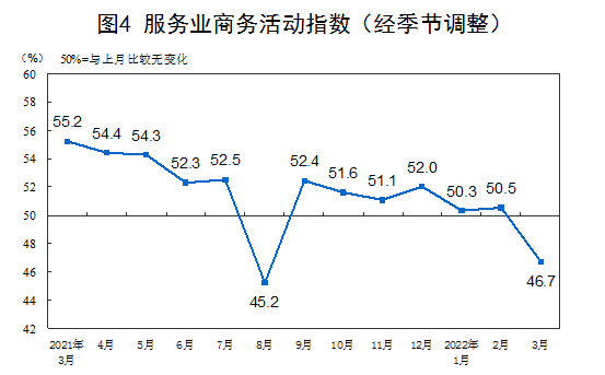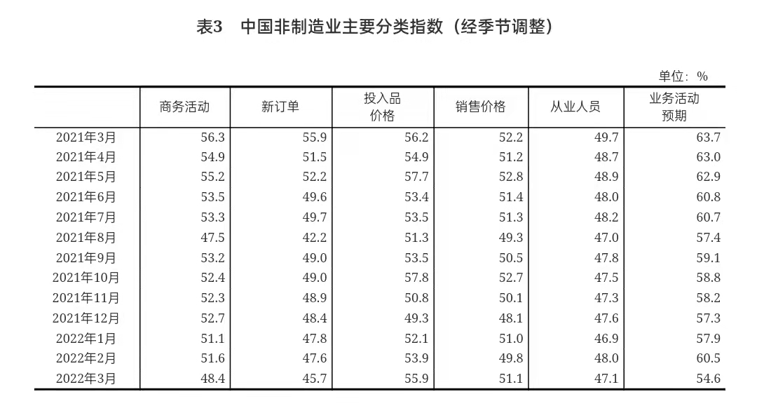 3月份,非制造業(yè)商務(wù)活動(dòng)指數(shù)為48.4%,比上月下降3.2個(gè)百分點(diǎn),非制造業(yè)景氣度降至收縮區(qū)間。