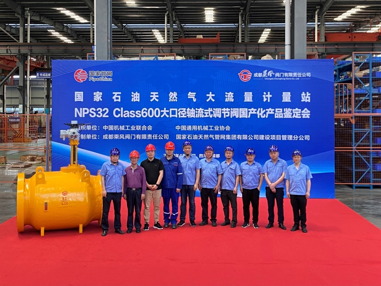 2022年4月26日,中國機(jī)械工業(yè)聯(lián)合會和中國通用機(jī)械工業(yè)協(xié)會在四川成都以現(xiàn)場與視頻方式組織召開了國家石油天然氣管網(wǎng)集團(tuán)有限公司建設(shè)項目管理分公司、成都乘風(fēng)閥門有限責(zé)任公司聯(lián)合研制的 “NPS32 Class600大口徑軸流式調(diào)節(jié)閥”國產(chǎn)化產(chǎn)品樣機(jī)鑒定會。