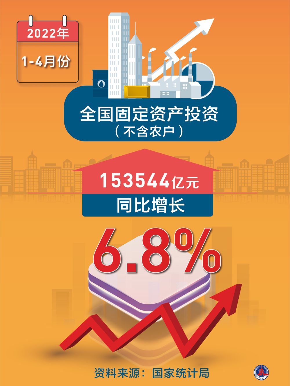 國家統(tǒng)計局5月16日發(fā)布數據顯示,今年以來,經濟新的下行壓力進一步加大,但總體看,中國經濟穩(wěn)中向好、長期向好的基本面沒有改變,轉型升級、高質量發(fā)展的大勢沒有改變。1至4月份,全國規(guī)模以上工業(yè)增加值同比增長4%,全國固定資產投資同比增長6.8%。