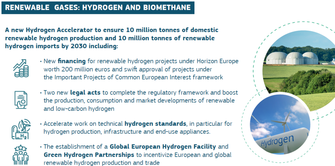 同時(shí),制定兩項(xiàng)新的法案,完善監(jiān)管框架,加快氫氣技術(shù)標(biāo)準(zhǔn)的制定工作并建立全球歐洲氫氣設(shè)施和綠色氫氣伙伴關(guān)系。
