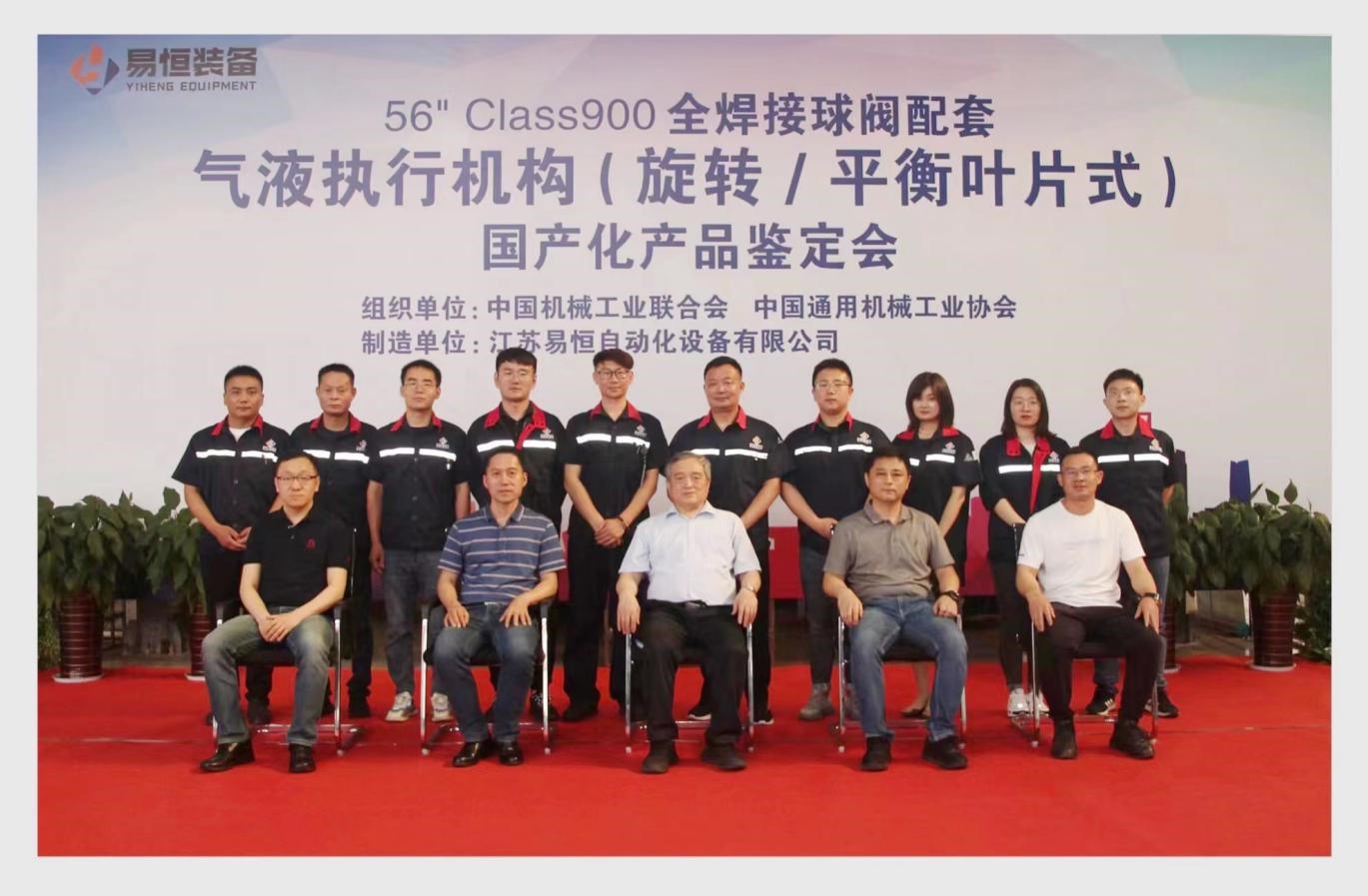 2022年5月31日,中國(guó)機(jī)械工業(yè)聯(lián)合會(huì)與中國(guó)通用機(jī)械工業(yè)協(xié)會(huì)在北京和江蘇鎮(zhèn)江兩地以視頻與現(xiàn)場(chǎng)結(jié)合的方式組織召開了由江蘇易恒自動(dòng)化設(shè)備有限公司研制的“56"Class900球閥配套氣液執(zhí)行機(jī)構(gòu)”(旋轉(zhuǎn)/平衡葉片式)產(chǎn)品樣機(jī)鑒定會(huì)。