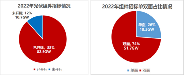 已公布單雙面要求的招標共計69.9GW,其中,雙面需求51.7GW,占比74%,較2021年占比增長13%,雙面組件在大型地面電站應用繼續(xù)提升!