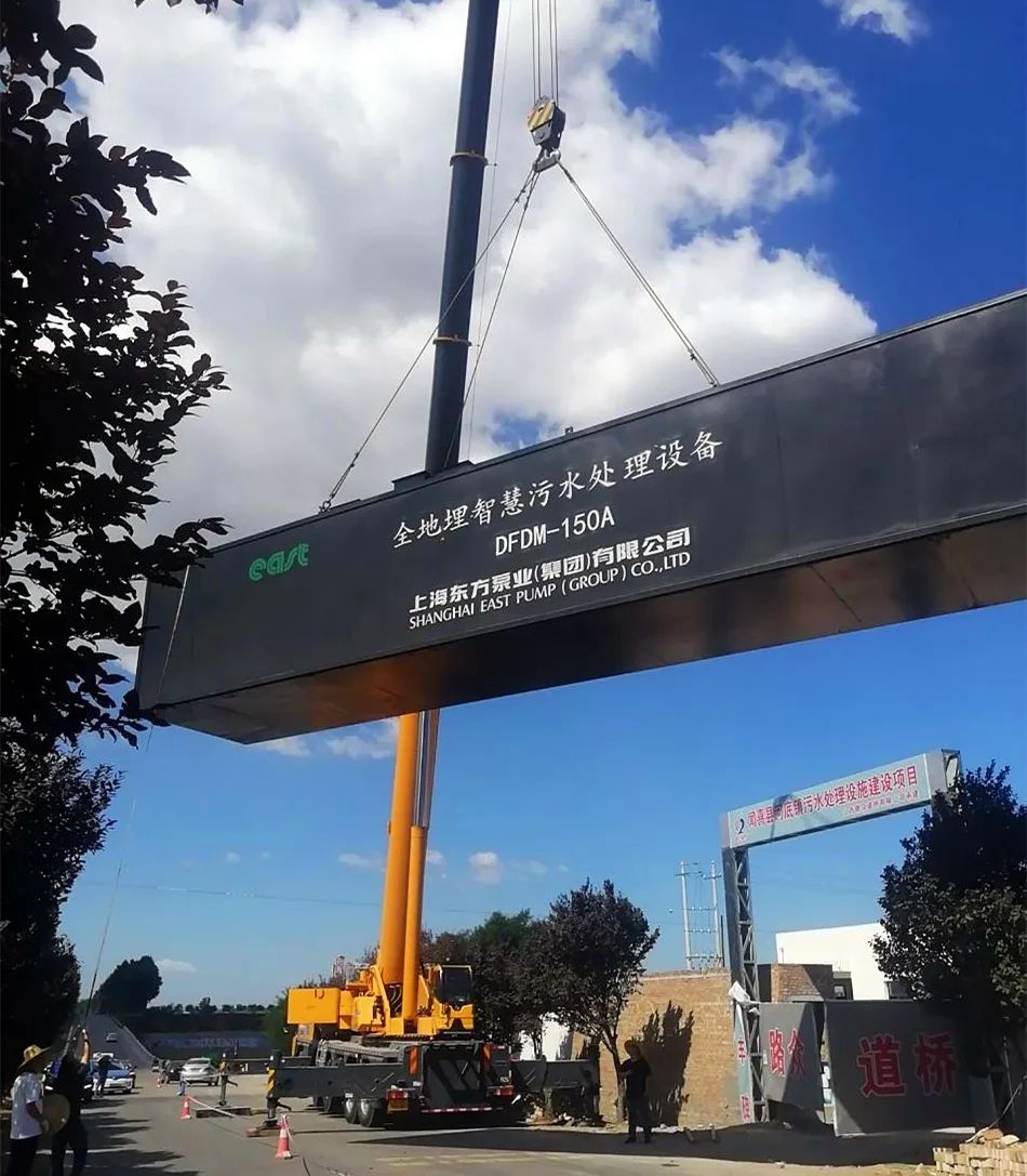 本項(xiàng)目含三個(gè)鄉(xiāng)鎮(zhèn)的污水處理,設(shè)計(jì)污水處理量分別為:河底鎮(zhèn)450m³/d、呱底鎮(zhèn)450m³/d、薛店鎮(zhèn)100m³/d,根據(jù)當(dāng)?shù)嘏欧艠?biāo)準(zhǔn)要求,出水達(dá)到《城鎮(zhèn)污水處理廠污染物排放標(biāo)準(zhǔn)》(GB18918-2002)表1中的一級(jí)A標(biāo)準(zhǔn)。因此,選擇穩(wěn)定、可靠的污水處理設(shè)備至關(guān)重要,東方泵業(yè)在得知項(xiàng)目方的需求后,前往項(xiàng)目地進(jìn)行考察,最終為該項(xiàng)目定制設(shè)計(jì)生產(chǎn)8臺(tái)東方智慧一體化污水處理設(shè)備,以滿足項(xiàng)目處理水量要求。由于上海疫情影響,為滿足現(xiàn)場(chǎng)工期進(jìn)度,東方泵業(yè)在疫情封控期間,組織相關(guān)部門針對(duì)產(chǎn)品方案、技術(shù)生產(chǎn)全面協(xié)調(diào)溝通,敦促生產(chǎn),解封后迅速對(duì)設(shè)備進(jìn)行組裝及調(diào)試,較大程度上縮短了現(xiàn)場(chǎng)設(shè)備安裝及調(diào)試時(shí)間。