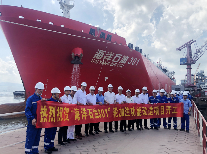 “海洋石油301”LNG加注功能改造項目開工儀式通過云視頻連接方式進(jìn)行,設(shè)立天津、廣州兩個會場。據(jù)悉,改造作業(yè)計劃用時80多天,將于今年10月底完成。