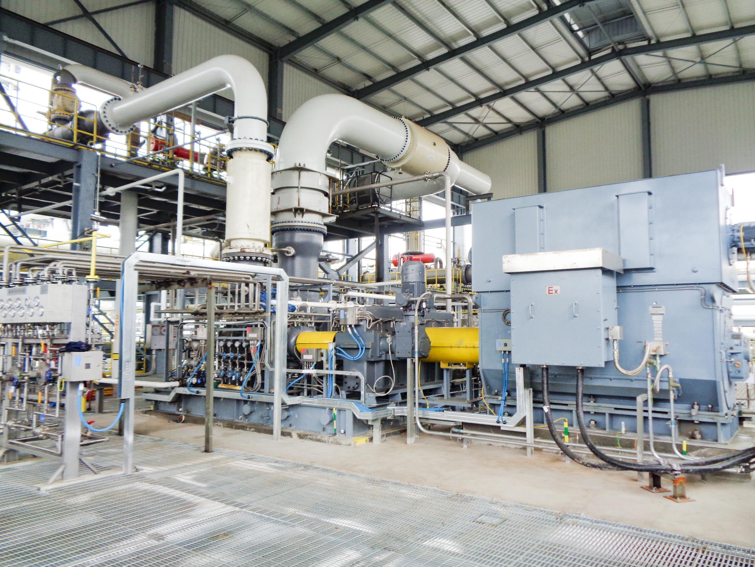 循環(huán)氣壓縮機則是乙炔提濃工序里的核心動設備。在富含乙炔的NMP溶液解吸過程中,該設備可以使乙炔解吸塔塔壓達到和維持在較高真空度,確保塔內分壓始終在安全范圍內。同時,也具備提高溶液解吸效果,實現(xiàn)解吸氣循環(huán)吸收的功能,從而確保乙炔產(chǎn)品收率和濃度滿足下游合成要求。