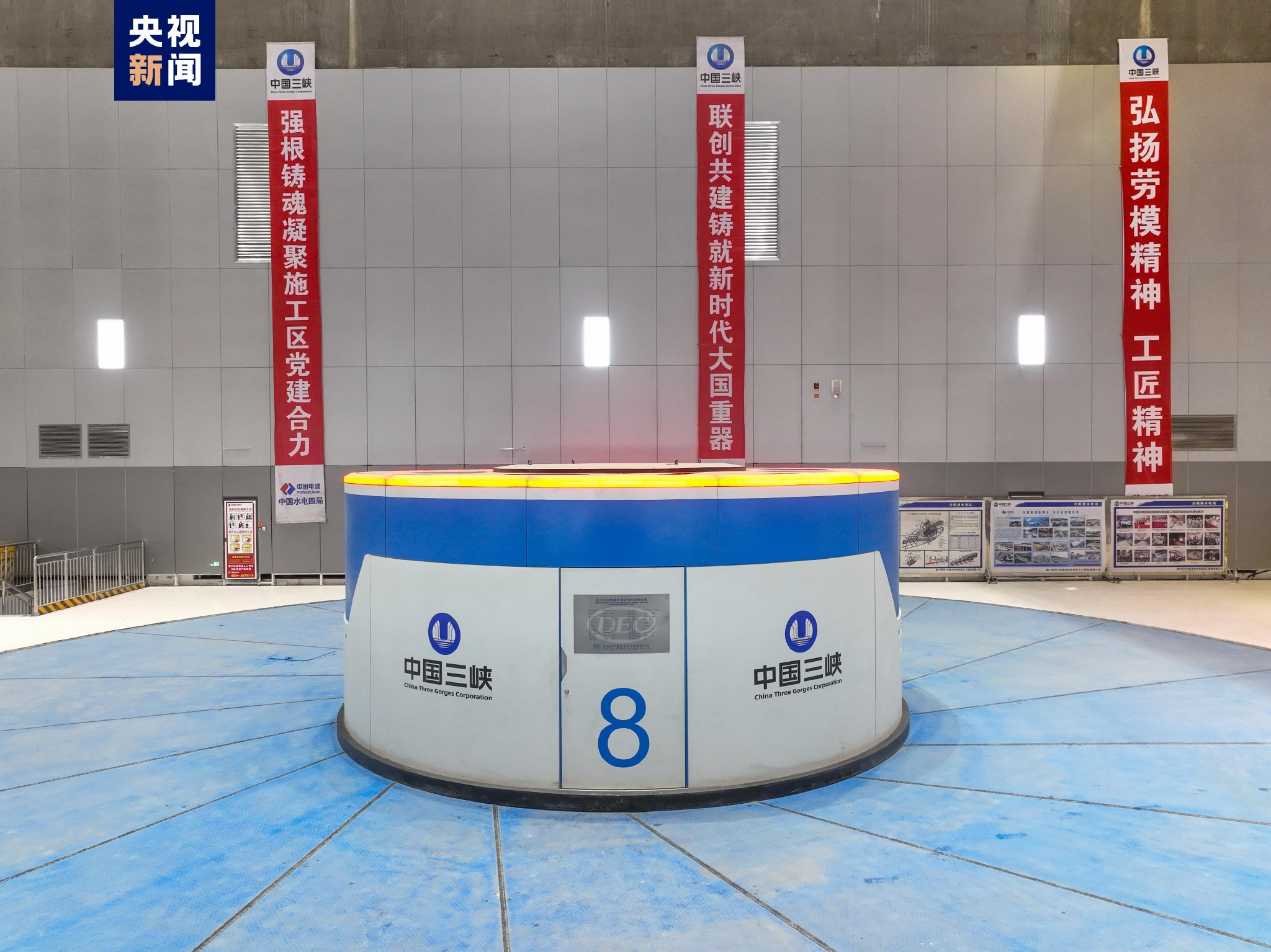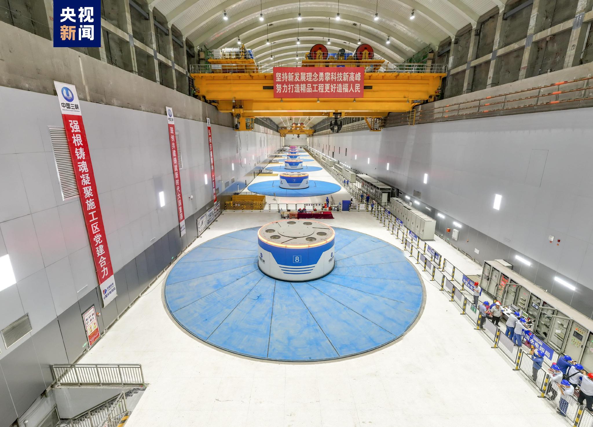 白鶴灘水電站共安裝16臺單機容量100萬千瓦水輪發(fā)電機組,其中1號至8號機組布置在左岸廠房,9號至16號機組布置在右岸廠房。本次投產(chǎn)的8號機組是白鶴灘水電站投產(chǎn)發(fā)電的第12臺百萬千瓦水輪發(fā)電機組。