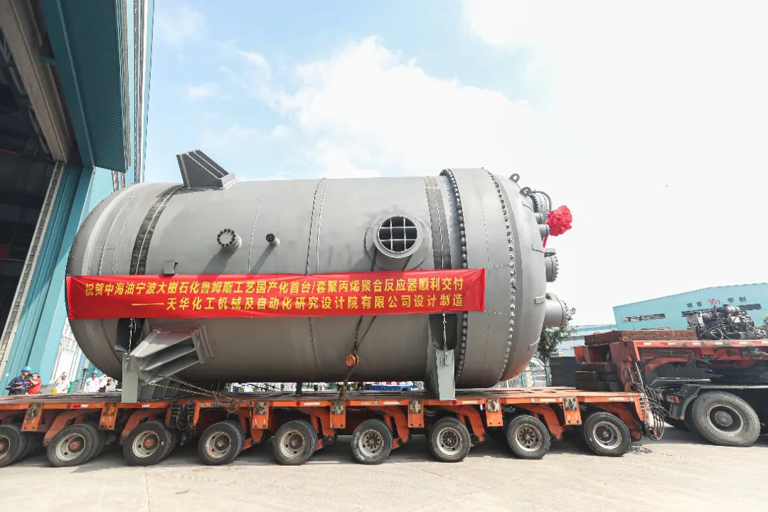 2021年7月,這一承載了天華人近3年努力的國內(nèi)首臺(tái)魯姆斯工藝聚丙烯聚合反應(yīng)器,在中國特種設(shè)備檢測(cè)研究院、中國科學(xué)院上海有機(jī)化學(xué)研究所、魯姆斯專利商、中海油寧波大榭石化公司、中國石化工程建設(shè)有限公司、中國寰球工程有限公司北京分公司、中國天辰工程有限公司、中國華陸工程有限公司、中石化寧波工程有限公司、中國軟包裝集團(tuán)有限公司等15家企業(yè)代表共同見證下盛大出廠和順利交付。