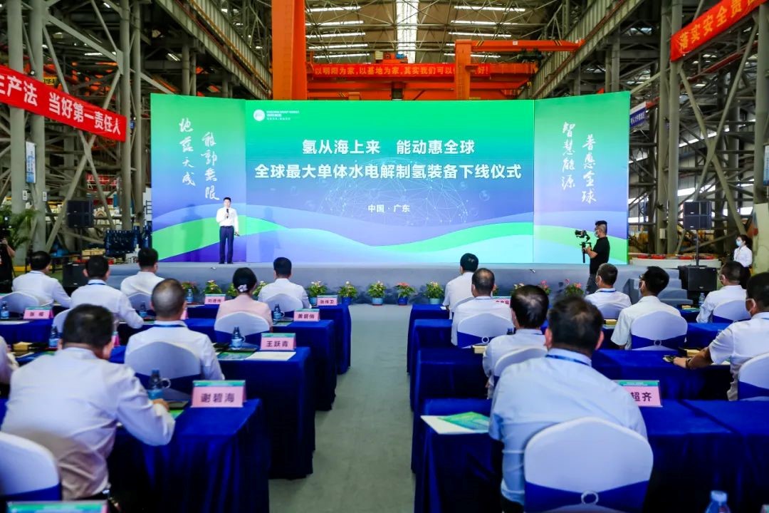 10月13日,明陽智慧能源集團(tuán)股份公司全球最大單體堿性水電解制氫裝備在廣東下線。