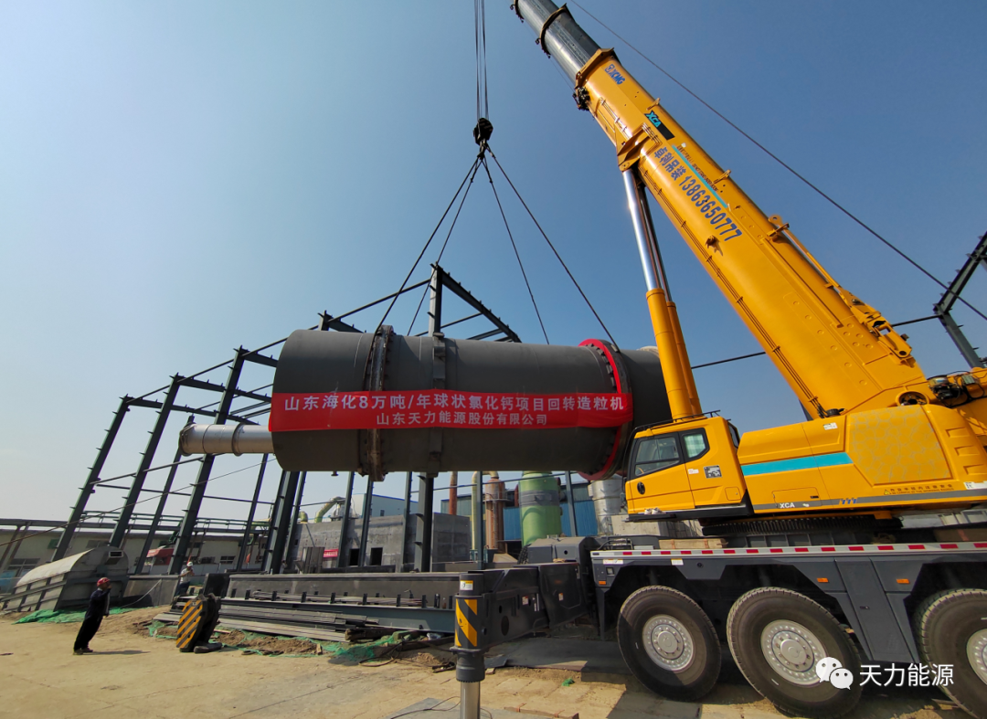 近日,山東天力能源股份有限公司承接的山東?;煞萦邢薰径然}回轉(zhuǎn)造粒干燥機(jī)順利完成吊裝,正式進(jìn)入全面安裝階段。