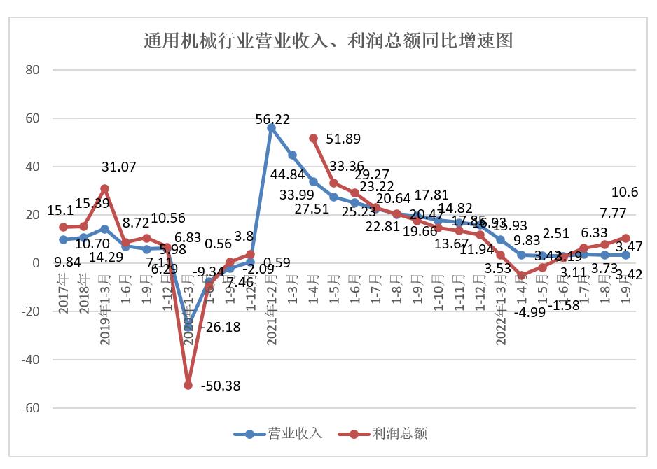 今年1-9月,通用機(jī)械行業(yè)認(rèn)真貫徹落實黨中央經(jīng)濟(jì)工作會議精神及有關(guān)政策,積極應(yīng)對國內(nèi)外復(fù)雜多變的宏觀環(huán)境,堅持穩(wěn)字當(dāng)頭、穩(wěn)中求進(jìn)。行業(yè)經(jīng)濟(jì)運(yùn)行一季度平穩(wěn)開局但季末下行,二季度克服疫情不利因素企穩(wěn)回升,三季度穩(wěn)中有升,但穩(wěn)增長任務(wù)依然艱巨。