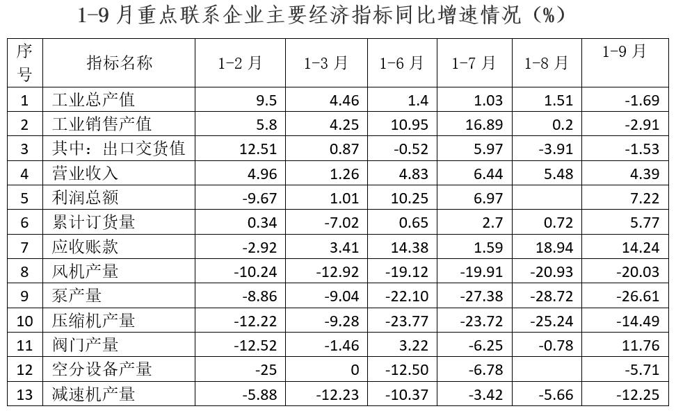 重點(diǎn)聯(lián)系企業(yè)產(chǎn)量完成情況:風(fēng)機(jī)617.56萬臺,同比下降20.03%;泵1295.60萬臺,同比下降26.61%;壓縮機(jī)14.32萬臺,同比下降14.49%;閥門134.72萬噸,同比增長11.76%;中大型空分設(shè)備66套,同比下降5.71%;減變速機(jī)94.31萬臺,同比下降12.25%。