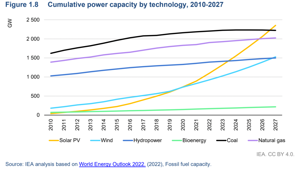 該報告稱,全球能源危機(jī)正在推動可再生能源安裝的急劇加速,未來五年全球總產(chǎn)能增長將幾乎翻一番,并有助于保持將全球變暖限制在1.5攝氏度的可能性。