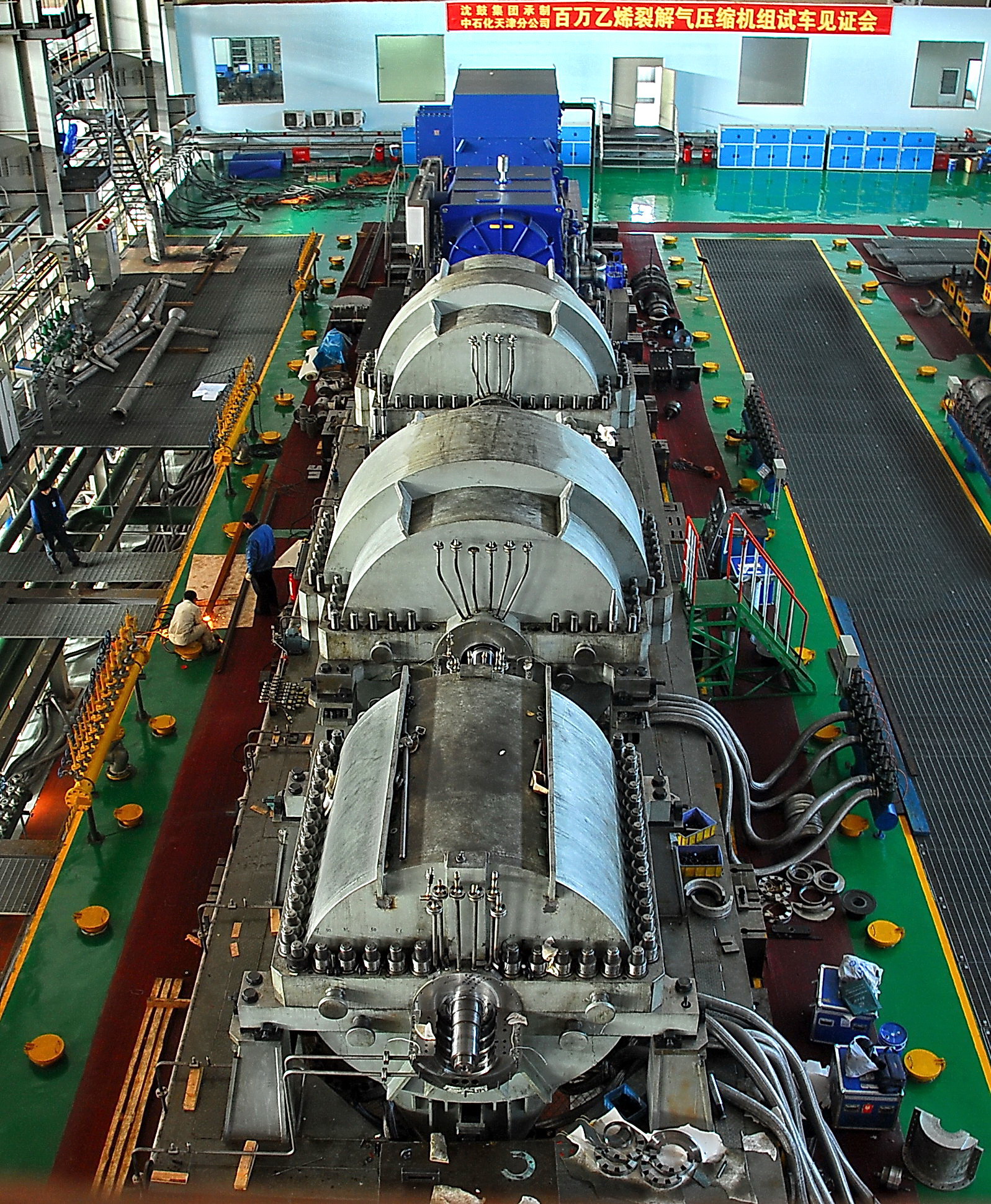 乙烯是世界上產(chǎn)量最大的化學產(chǎn)品之一,乙烯工業(yè)是石油化工產(chǎn)業(yè)的核心,乙烯產(chǎn)品占石化產(chǎn)品的75%以上,在國民經(jīng)濟中占有重要地位,世界上已將乙烯產(chǎn)量作為衡量一個國家石油化工發(fā)展的重要標志之一。乙烯“三機”是乙烯裝置中的核心動設(shè)備,相當于乙烯裝置的“心臟”,一旦出現(xiàn)問題,將會給乙烯生產(chǎn)造成不可挽回的巨大損失。因此,任何用戶在選擇乙烯“三機”時,都會用大量時間貨比三家,慎之又慎。此前,只有美國、德國、日本等少數(shù)發(fā)達國家具備百萬噸級乙烯壓縮機制造能力。近年來,沈鼓集團堅持自主創(chuàng)新,接連打破國際壟斷,實現(xiàn)了100萬噸、120萬噸、150萬噸級乙烯“三機”研制的“三級跳”,且機組各項性能達到世界先進水平,為國內(nèi)乃至全球用戶提供了新的選擇——使用中國制造的百萬噸級乙烯“三機”。