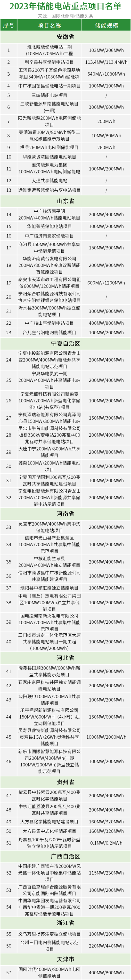 截至目前,廣東、浙江、江蘇、河南、山東、海南等省(市)發(fā)布2023年重點項目清單。據(jù)統(tǒng)計,其中包含儲能重點項目57個,儲能總規(guī)模9471.1MW/20403.6MWh。抽水蓄能重點項目80個,總裝機115710MW,項目總投資6144.15億元。