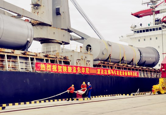 近日,陜鼓總包的印尼某公司11,000噸(鎳鈷)/年電池級(jí)硫酸鎳鈷總包項(xiàng)目首批單元設(shè)備完成裝載,順利啟航。