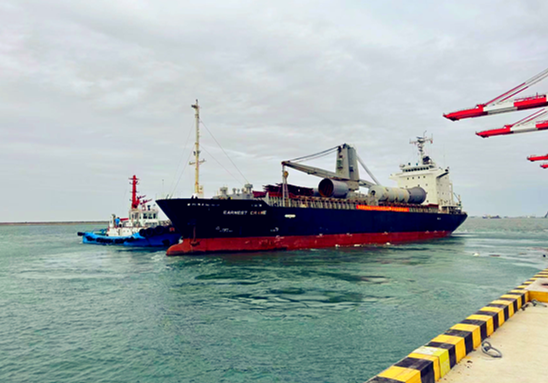4月20日13時(shí),“EARNEST CRANE”(信鶴)游輪靠泊呂四港碼頭并開始辦理裝貨手續(xù),下午17時(shí)正式開倉(cāng)裝貨。4月24日凌晨完成設(shè)備裝載開始綁扎作業(yè)。4月24日15:30滿載設(shè)備駛離碼頭,順利起航。