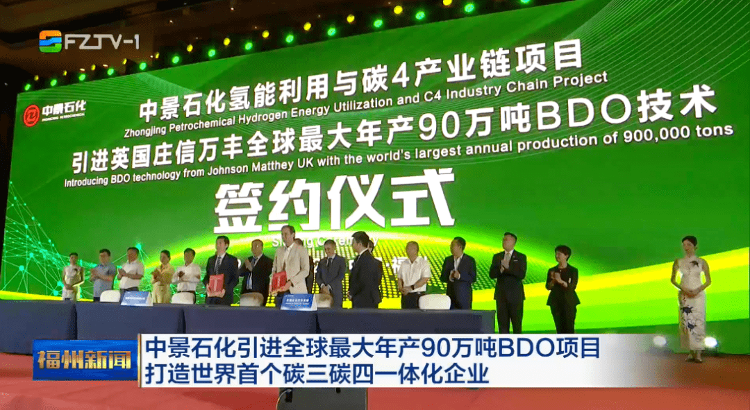 5月24日,中景石化氫能利用與碳四產(chǎn)業(yè)鏈引進(jìn)英國莊信萬豐全球最大年產(chǎn)90萬噸BDO技術(shù)簽約儀式在福州舉行。這標(biāo)志著中景石化投資180億元打造碳四新材料產(chǎn)業(yè)鏈,加速向高端化工產(chǎn)業(yè)邁進(jìn)。