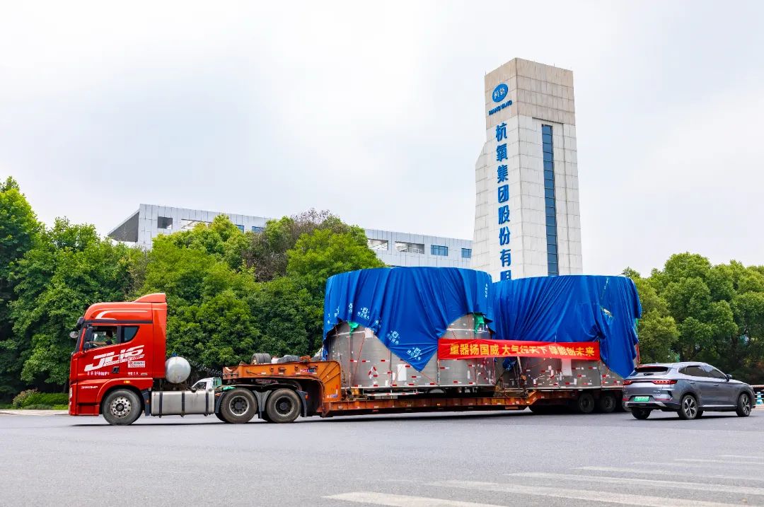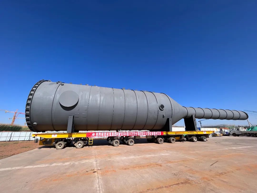 6月15日,杭氧配套內(nèi)蒙寶豐項目第一批設(shè)備進行吊裝發(fā)運前的最后準(zhǔn)備。在井然有序的指揮下,第一批寶豐項目6段下塔蓋好防護布,完成最后檢查,從12米高的行車平穩(wěn)吊裝到運輸車上。一小時后,三輛運輸車緩緩駛出臨安制造基地,向著距離三千多公里的內(nèi)蒙寶豐項目現(xiàn)場駛?cè)ァ?/span>