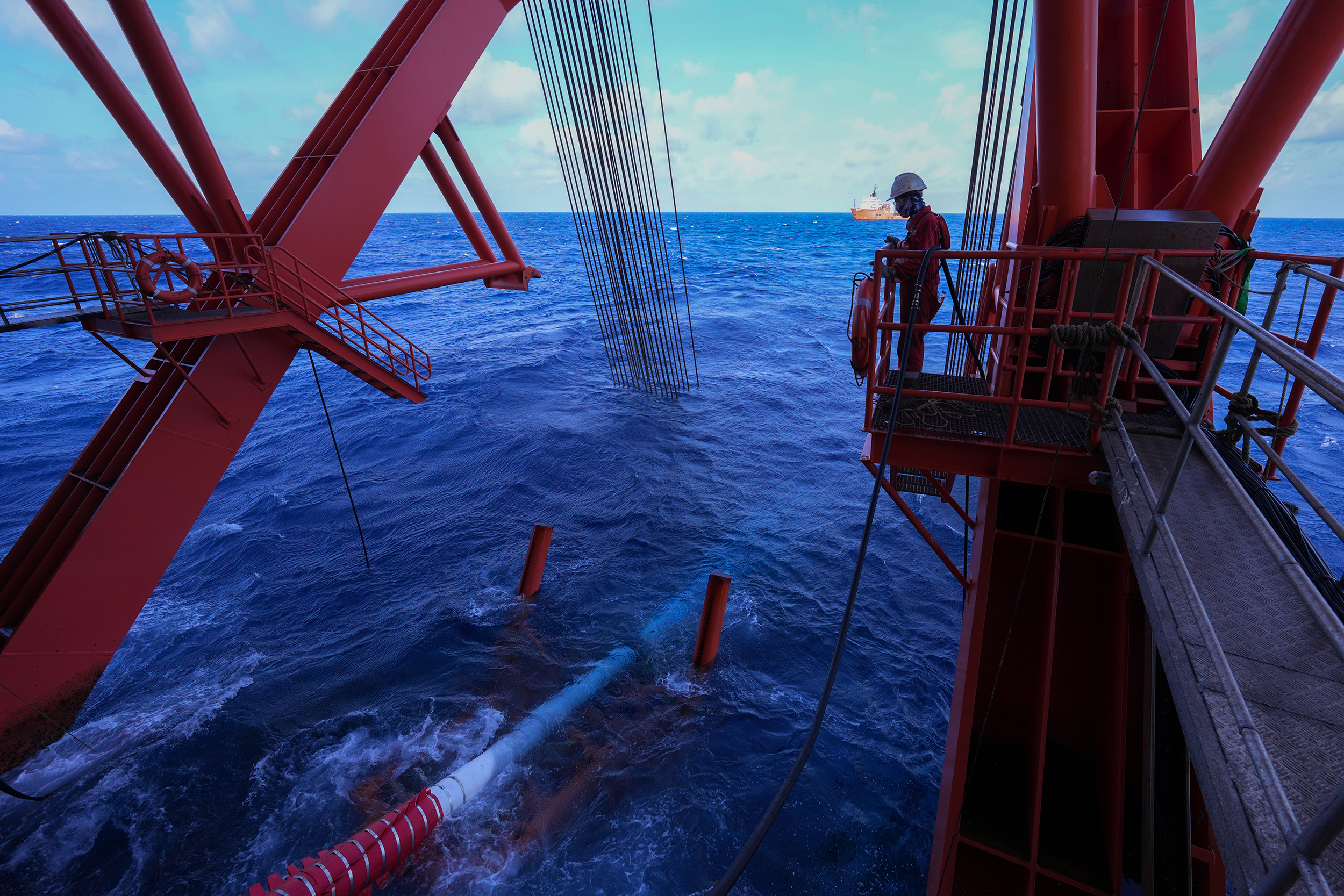 海底管道是保障海洋油氣平穩(wěn)輸送的“生命線”。“深海一號(hào)”二期工程是我國(guó)首個(gè)深水高壓氣田,從地層里開(kāi)采出的油氣成分復(fù)雜,溫度高、壓力大,常規(guī)材質(zhì)的海管無(wú)法滿(mǎn)足生產(chǎn)需要。中國(guó)海油在深水環(huán)境下首次應(yīng)用“114公里深水大口徑無(wú)縫鋼管+1.5公里深水雙金屬?gòu)?fù)合管”組合方案,搭建起連接“深海一號(hào)”二期工程油氣輸送“主動(dòng)脈”。