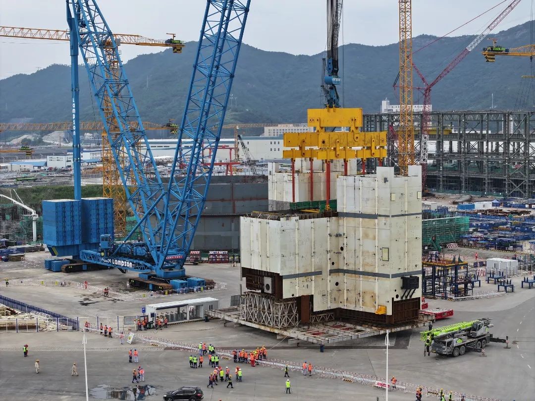 9月6日,三門核電4號(hào)機(jī)組核島反應(yīng)堆廠房CA01模塊吊裝就位。作為三門核電二期工程千噸級(jí)吊裝收官之作,該模塊吊裝總重約1046噸,是三門核電二期工程起吊重量最大的模塊,為4號(hào)機(jī)組后續(xù)主線施工作業(yè)奠定了堅(jiān)實(shí)基礎(chǔ)。