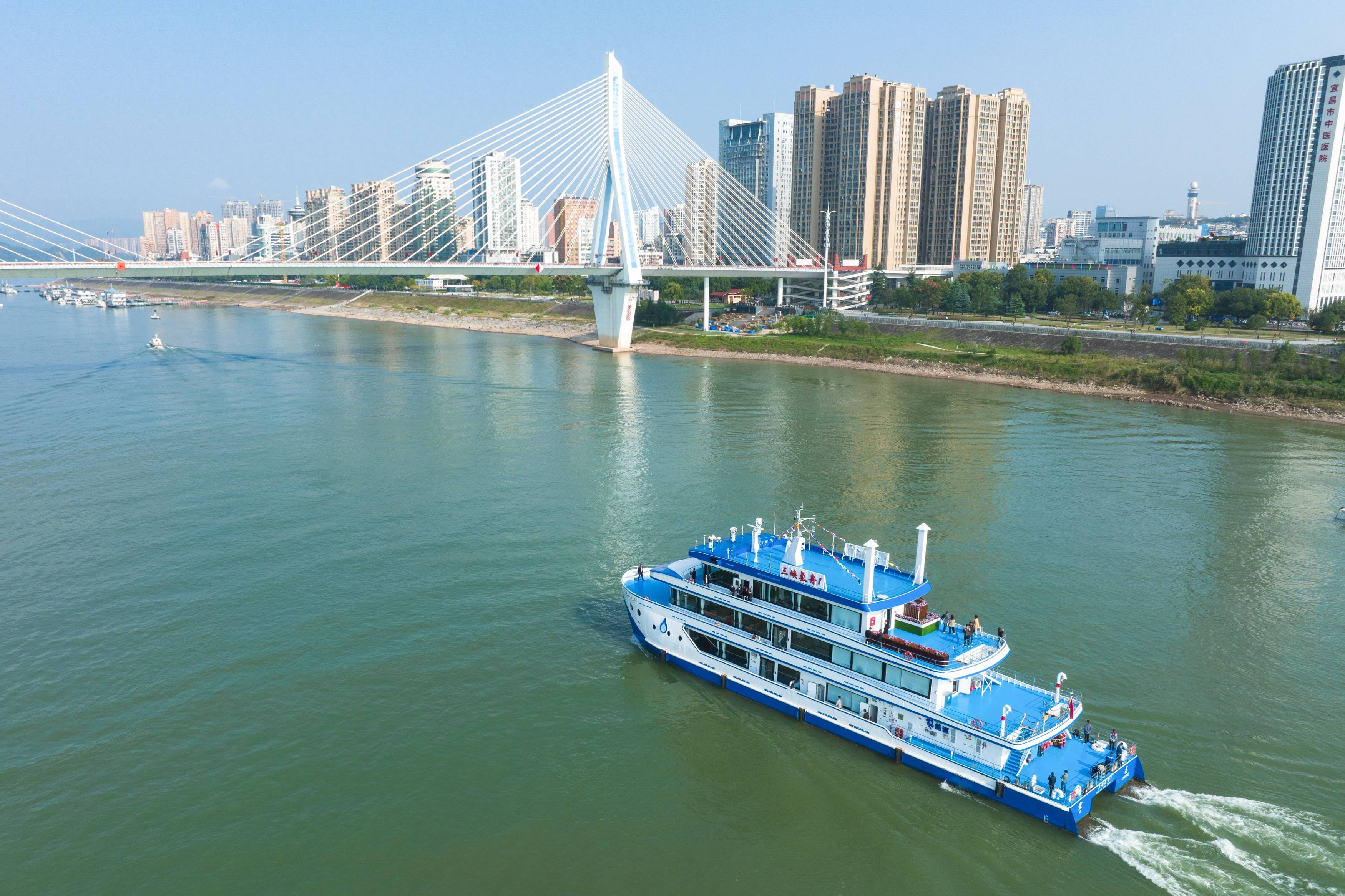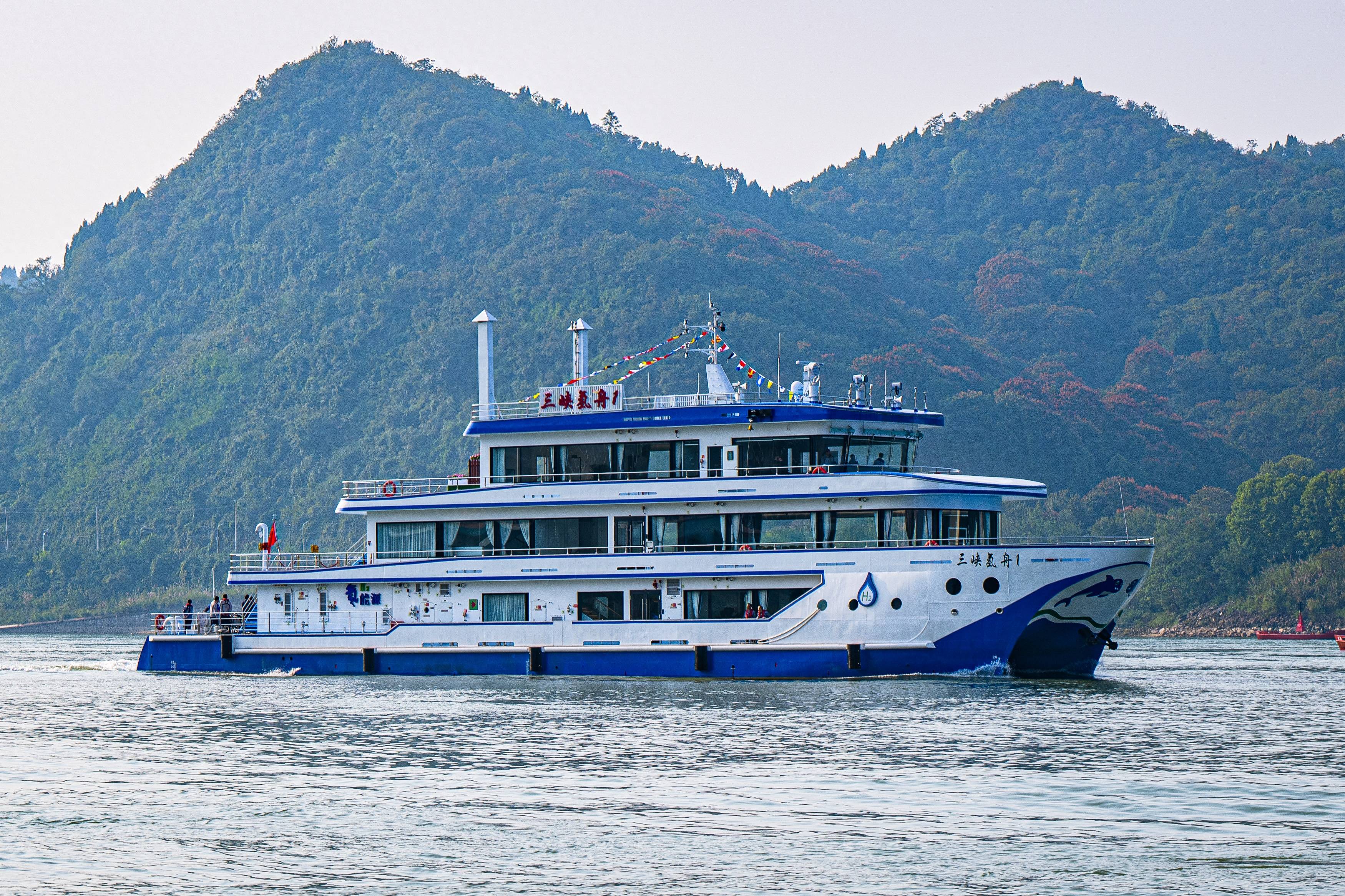 “三峽氫舟1”號(hào)總長49.9米、型寬10.4米、型深3.2米,乘客定額80人,主要采用氫燃料電池動(dòng)力系統(tǒng),最高航速28公里/小時(shí),續(xù)航里程可達(dá)200公里,交付后用于三峽庫區(qū)及三峽和葛洲壩兩壩間交通、巡查、應(yīng)急等工作。