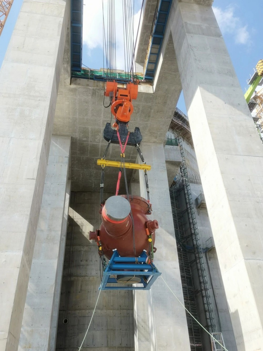 2023年10月20日10時,田灣核電站7號機(jī)組反應(yīng)堆廠房首臺主泵泵殼開始引入反應(yīng)堆廠房,標(biāo)志著7號機(jī)組主設(shè)備的引入和安裝工作取得階段性勝利。