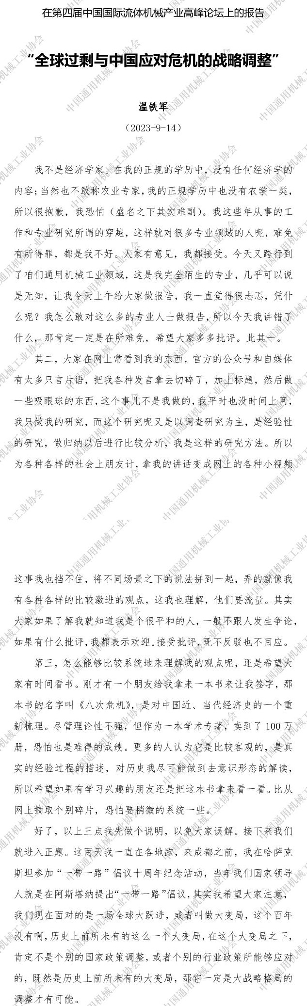 辯證唯物觀大勢(shì) 實(shí)事求是看世界——溫鐵軍教授在“第四屆中國(guó)國(guó)際流體機(jī)械產(chǎn)業(yè)高峰論壇”的報(bào)告