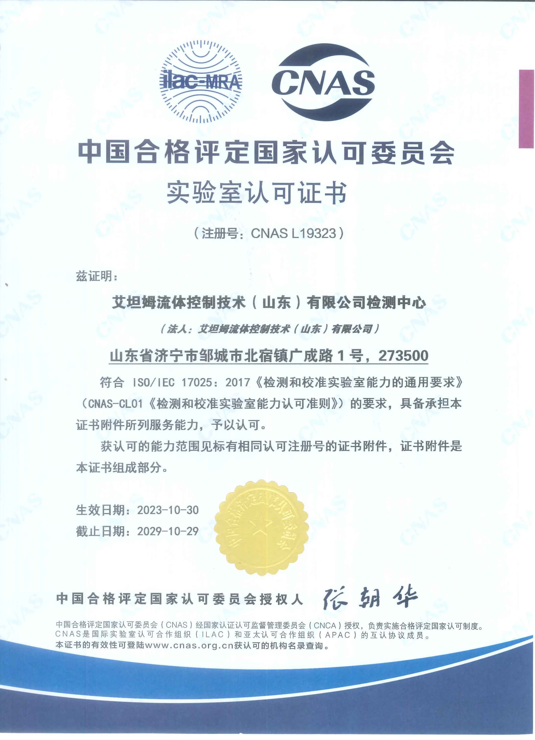 近日,艾坦姆公司成功收到中國(guó)合格評(píng)定國(guó)家認(rèn)可委員會(huì)認(rèn)可決定書,艾坦姆流體控制技術(shù)(山東)有限公司檢測(cè)中心成功獲批CNAS實(shí)驗(yàn)室認(rèn)可證書,標(biāo)志著艾坦姆公司質(zhì)量管理體系、管理水平和檢驗(yàn)檢測(cè)服務(wù)能力達(dá)到國(guó)際認(rèn)可水平,成功躋身國(guó)家認(rèn)可實(shí)驗(yàn)室行列,可為公司、同行以及客戶等提供更加專業(yè)的測(cè)試分析服務(wù),為產(chǎn)品的研發(fā)、生產(chǎn)制造、品質(zhì)性能等提供更為有力的技術(shù)保障。