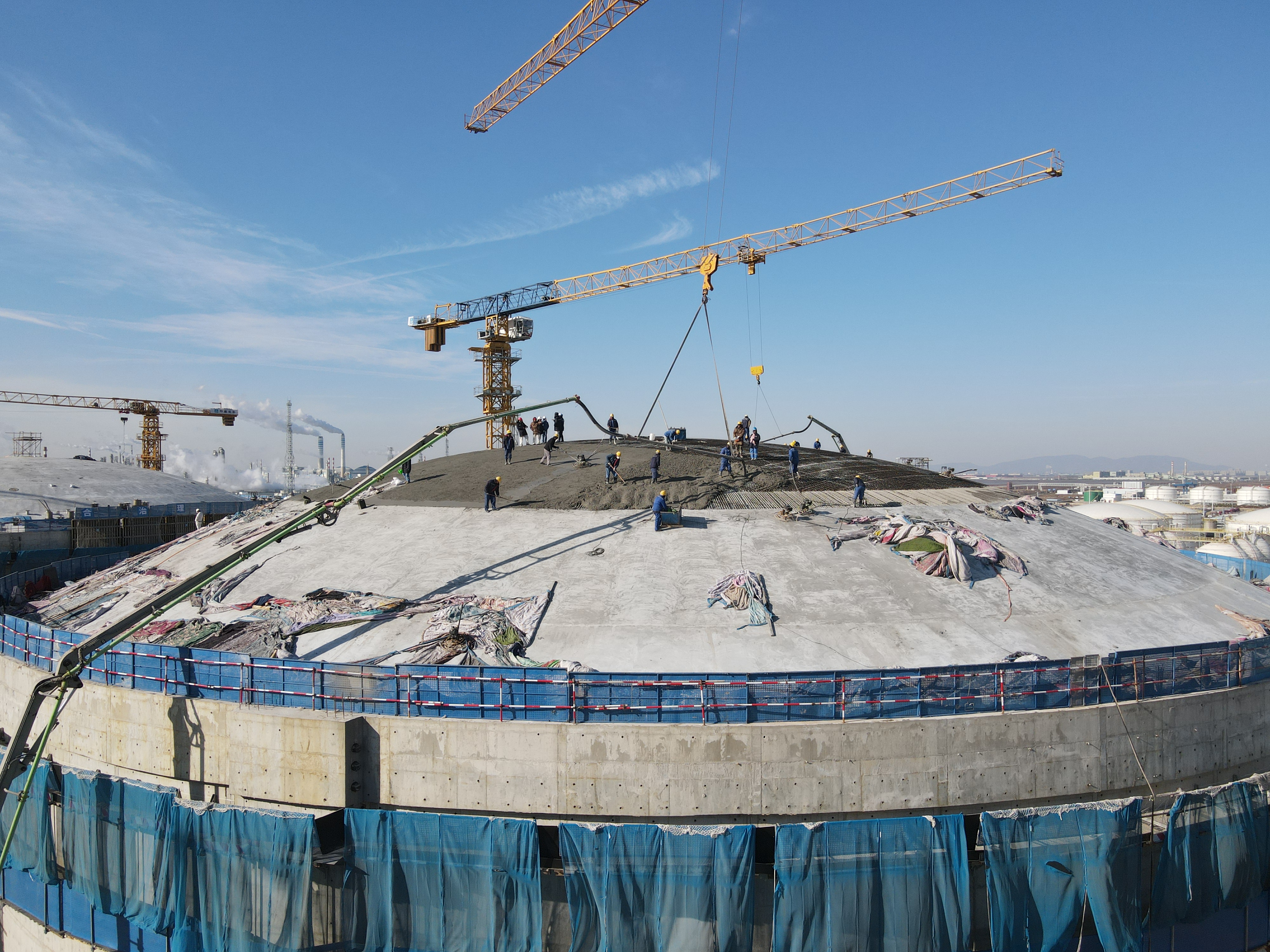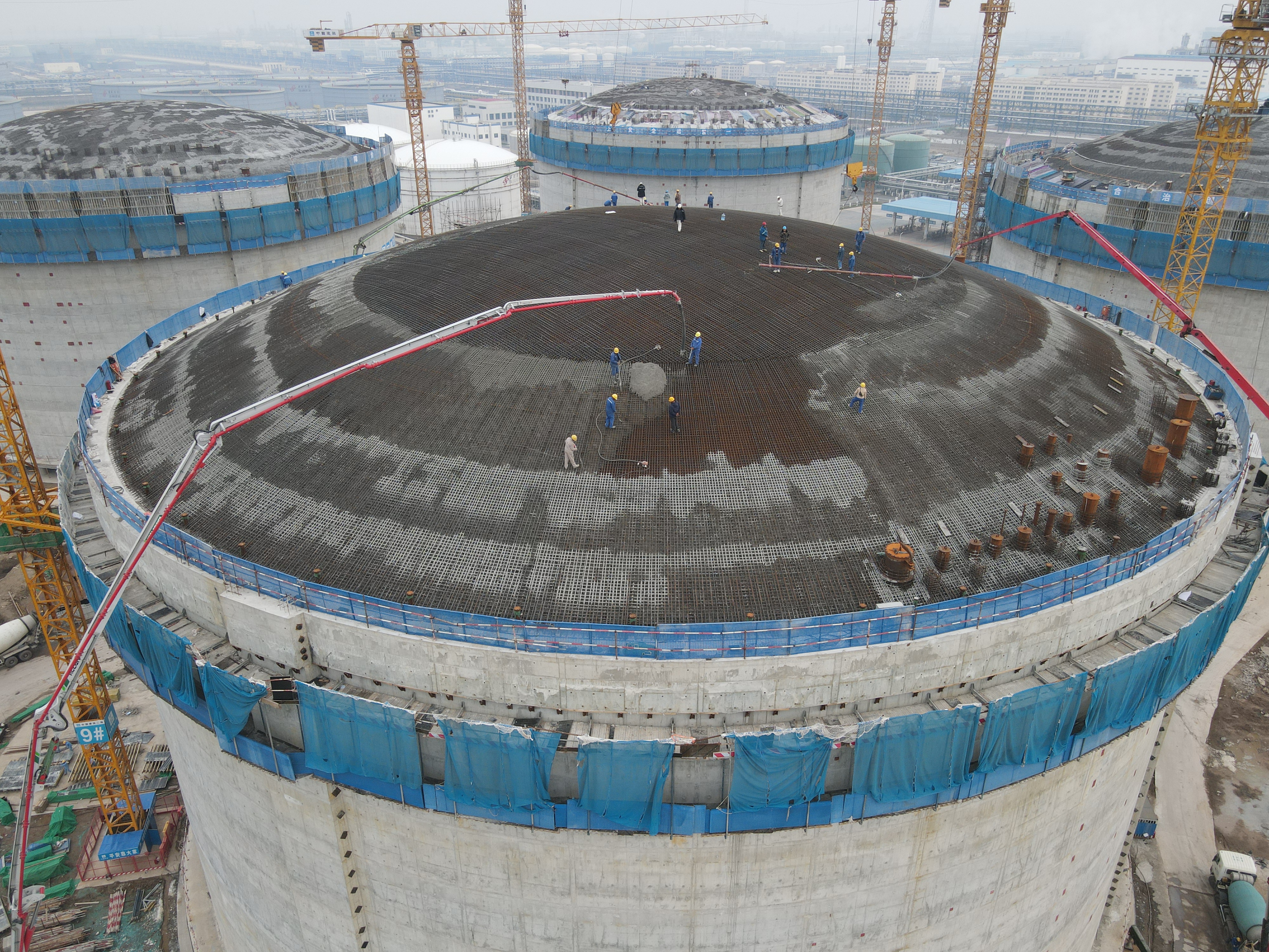 11月30日,中國(guó)空分承接的連云港榮泰五期項(xiàng)目低溫丙烷/丁烷通用混凝土儲(chǔ)罐穹頂澆筑圓滿(mǎn)完成,標(biāo)志著兩座120000m3混凝土儲(chǔ)罐外罐主體結(jié)構(gòu)全部完成。