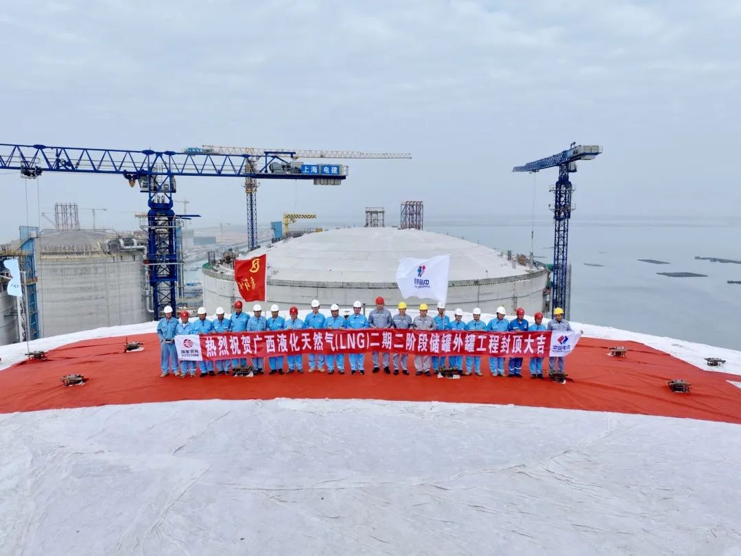 12月11日,廣西LNG二期二階段項目TK-06儲罐穹頂混凝土澆筑完成,標志著本項目兩座儲罐外罐主體結(jié)構(gòu)全部完成。
