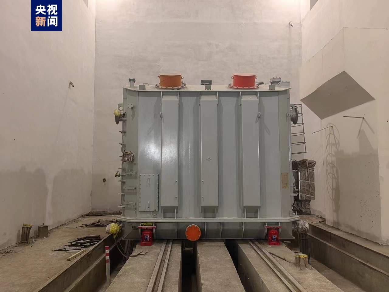 瑪爾擋水電站主變洞共設(shè)置13臺容量為210兆伏安的單相變壓器和1臺容量為140兆伏安的三相變壓器,此次就位的主變壓器尺寸長5.6米、寬3.4米、高4.05米,重量為119.55噸。