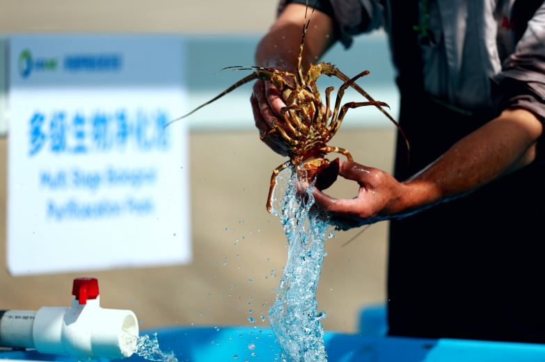 大鵬所處海域水質(zhì)優(yōu)良,海水經(jīng)過(guò)多次過(guò)濾和電解氯酸鈉消毒后在ORV內(nèi)與LNG進(jìn)行熱交換,產(chǎn)生大量低溫、無(wú)菌海水,且低溫海水的溶氧能力強(qiáng),是極為難得的天然高品質(zhì)低溫養(yǎng)殖用水,被養(yǎng)殖戶形象地成為“鉆石水”。同時(shí),項(xiàng)目創(chuàng)新性地建立了一套科學(xué)、立體的循環(huán)活水養(yǎng)殖系統(tǒng),直接從接收站明渠中抽取低溫、無(wú)菌的海水進(jìn)入養(yǎng)殖系統(tǒng),經(jīng)過(guò)儲(chǔ)水塔、冷水低溫處理池、組合養(yǎng)殖箱、尾水池、尾水多級(jí)處理池的循環(huán)流動(dòng)后,流回明渠,流進(jìn)海洋,整個(gè)過(guò)程不會(huì)對(duì)海洋環(huán)境造成任何破壞。