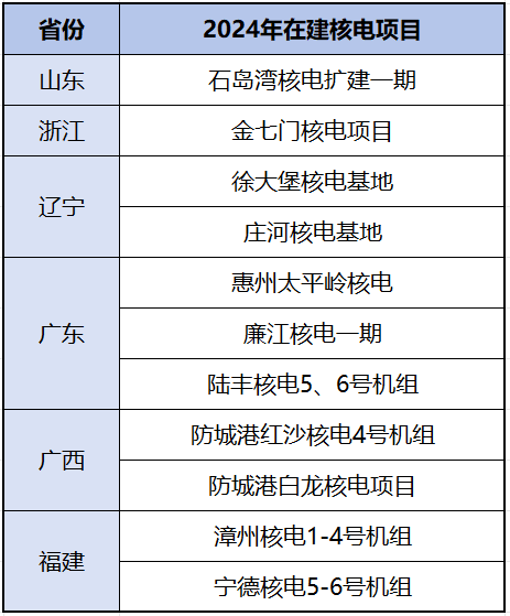 2024年推進漳州核電1-4號機組、寧德核電5-6號機組項目建設。