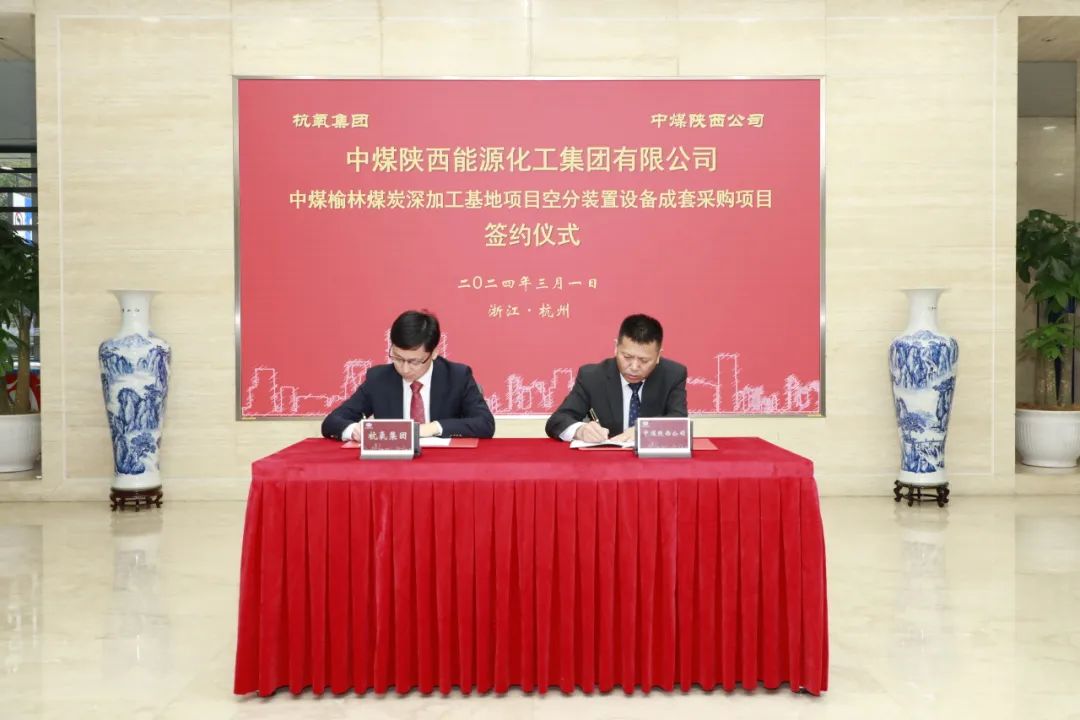 3月1日,杭氧集團(tuán)與中煤陜西能源化工集團(tuán)有限公司舉行中煤榆林煤炭深加工基地項(xiàng)目空分裝置設(shè)備成套采購項(xiàng)目簽約儀式。中煤陜西公司副總經(jīng)理、煤化工二期指揮部總指揮周永濤,煤化工二期指揮部副總指揮杜鵬翔,煤化工二期指揮部副總工程師尹廷山等一行到訪杭氧,杭氧集團(tuán)董事長、總經(jīng)理鄭偉,副總經(jīng)理、總工程師韓一松,副總經(jīng)理?xiàng)顔埖葏⒓雍灱s儀式。