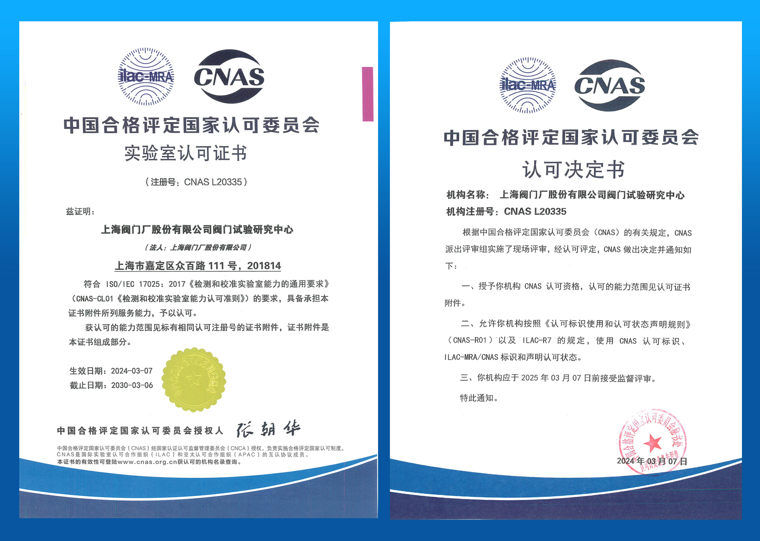 近日,上海閥門廠股份有限公司收到中國合格評定國家認(rèn)可委員會認(rèn)可決定書,上海閥門廠股份有限公司閥門試驗研究中心成功獲批CNAS實驗室認(rèn)可證書,標(biāo)志著上海閥門廠股份有限公司質(zhì)量管理體系、管理水平和檢驗檢測服務(wù)能力達到國際認(rèn)可水平,成功躋身國家認(rèn)可實驗室行列。