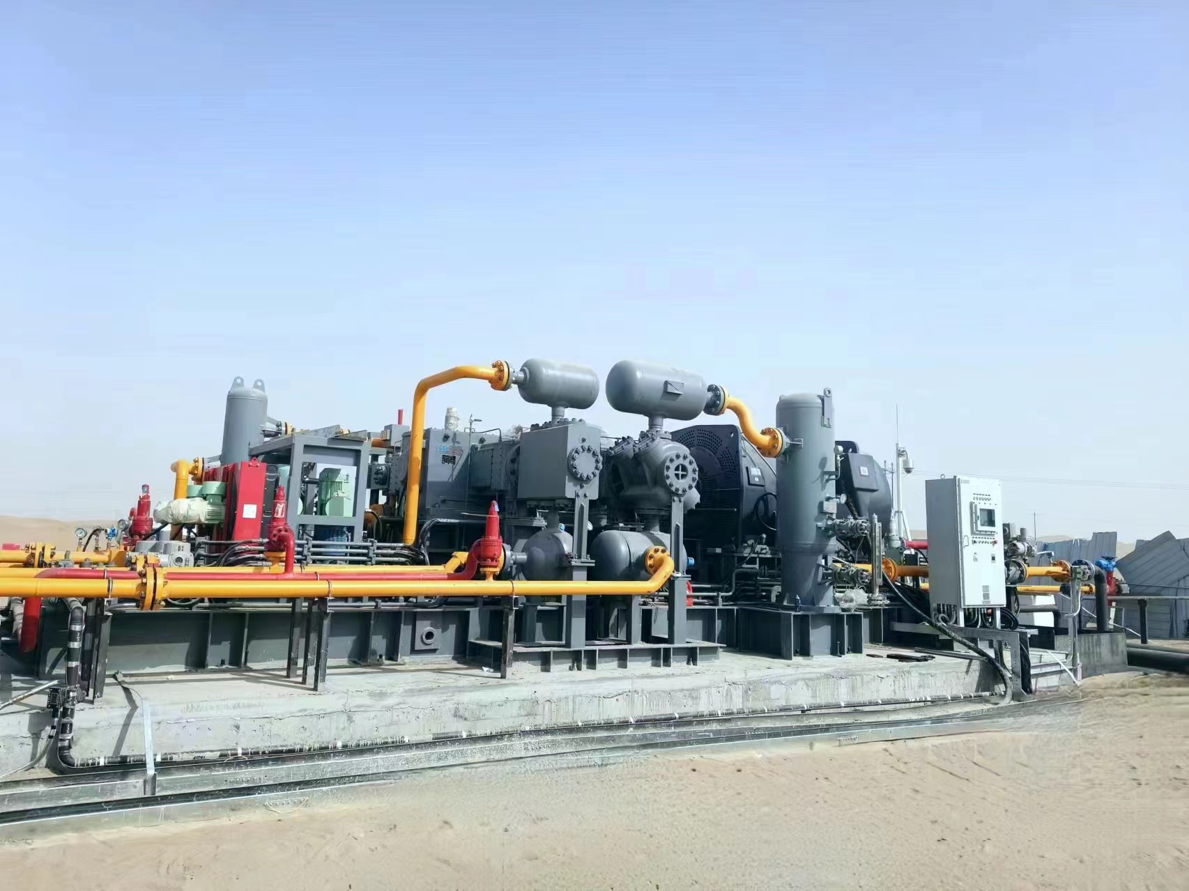 據(jù)介紹,在此之前,國(guó)內(nèi)普遍主要采用的大排量機(jī)組最高排氣壓力為52MPa,流量為25萬(wàn)方/天,排氣壓力無(wú)法滿足超深井注氣壓力需求。